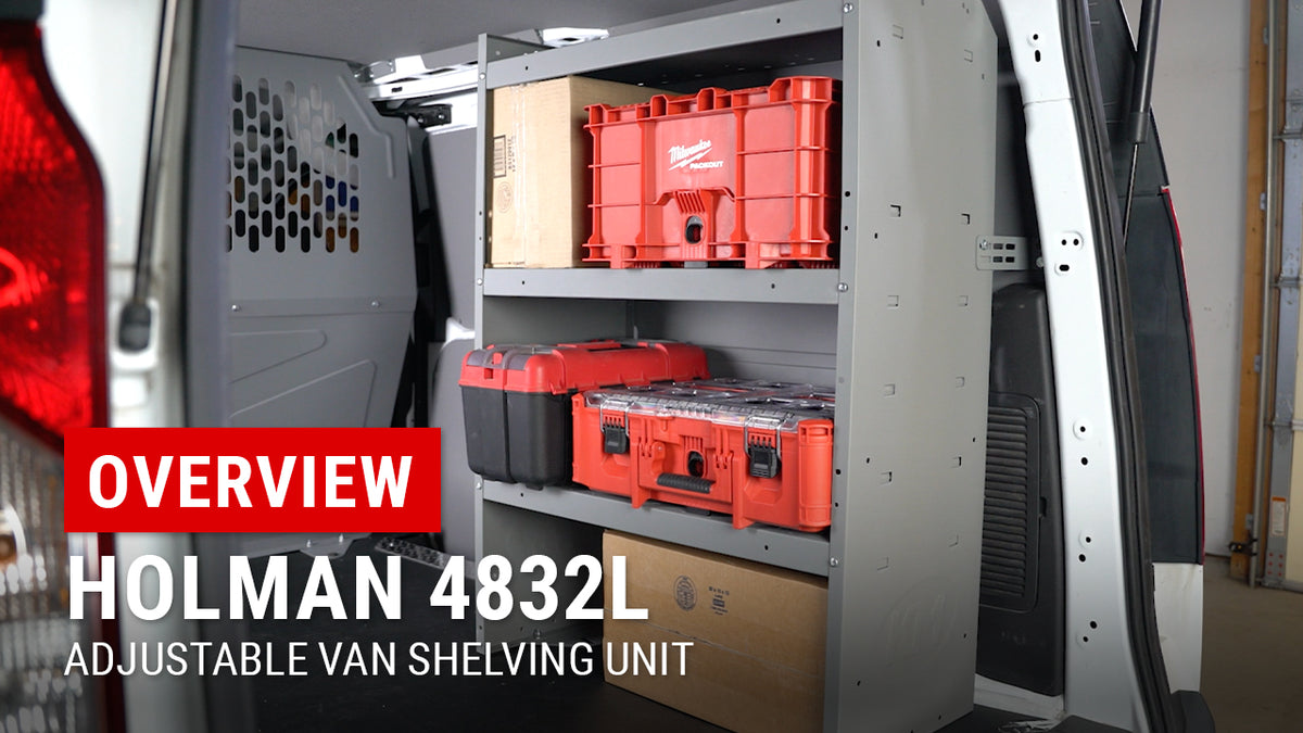 Take a look at the Holman (formerly Kargo Master) 4832L adjustable van shelving unit installed in our 2016 Ford Transit Connect LWB.