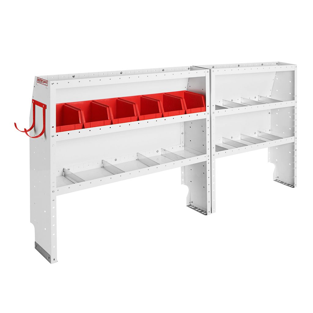 Designed for contractors, remodelers or other general service providers, the Model 600-8111R van package for Full-Size, 130in wheel base Ford Transit vans provides adjustable cargo van shelving sized to fit the commercial van interior, 6 medium storage bins, a 5-drawer secure storage cabinet, and accessories. It includes a sturdy van bulkhead for maximum protection against shifting loads. Additional van products are available to create a custom van storage solution