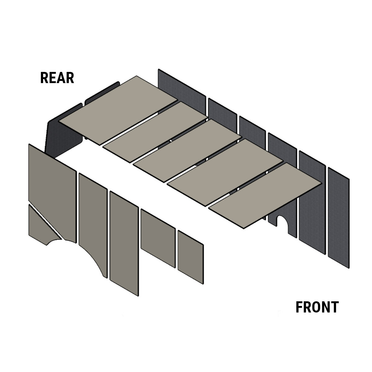 Tailored for Precision: Designed to fit specific vehicle models, our insulation kits are meticulously crafted to ensure a perfect fit for your van. With organized insulation patterns conveniently labeled and a corresponding schematic, the installation process becomes even more intuitive. Each panel is stamped with a letter/number combination allowing for easy identification and straightforward installation.