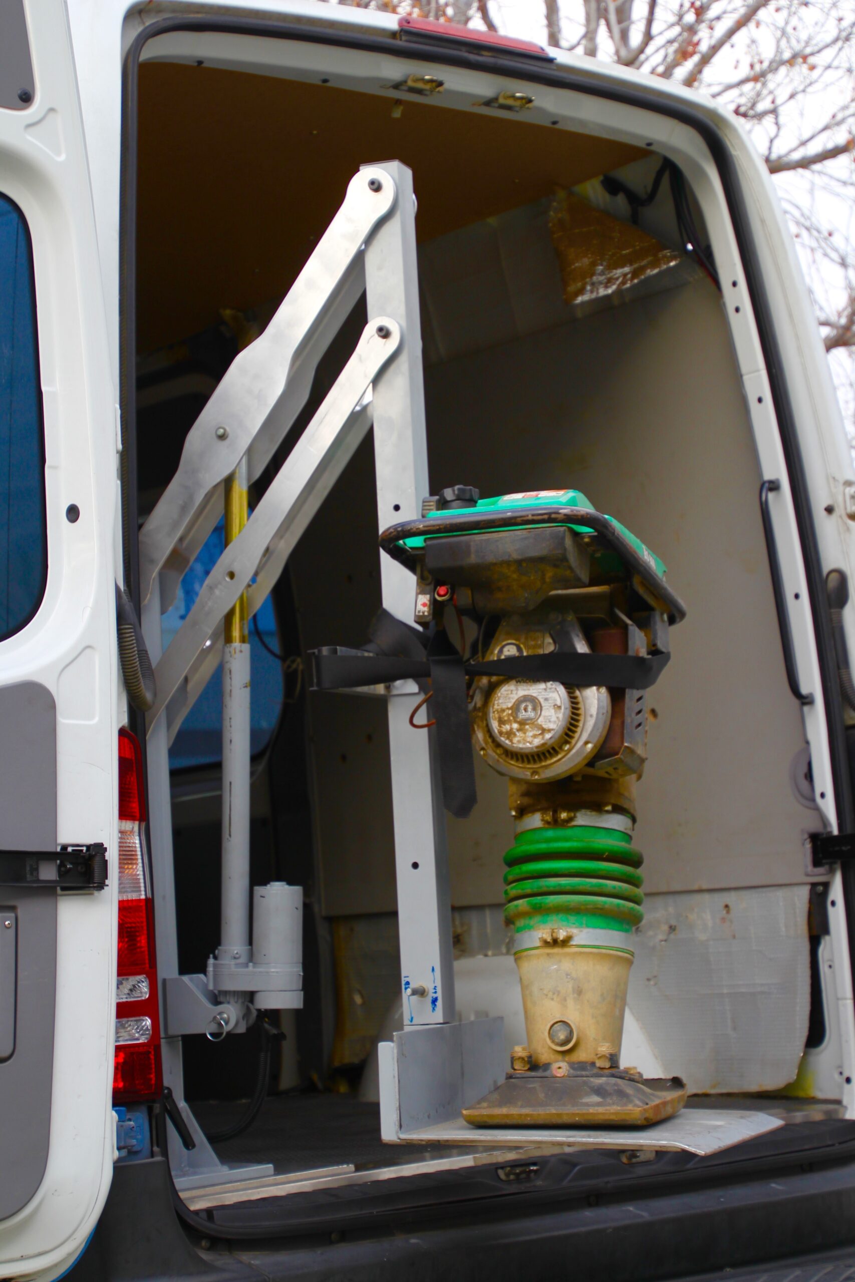 Finally, a cargo van liftgate with the footprint of a dolly! Effortlessly lift and rotate up to 500 pounds into the back or side of your cargo van using a wired remote control. When not in use, the liftgate can be quickly stowed into a 8″ x 20″ footprint. Get rid of the bulky cargo van ramps and traditional liftgates and level up with an Atlas Lift cargo van liftgate!