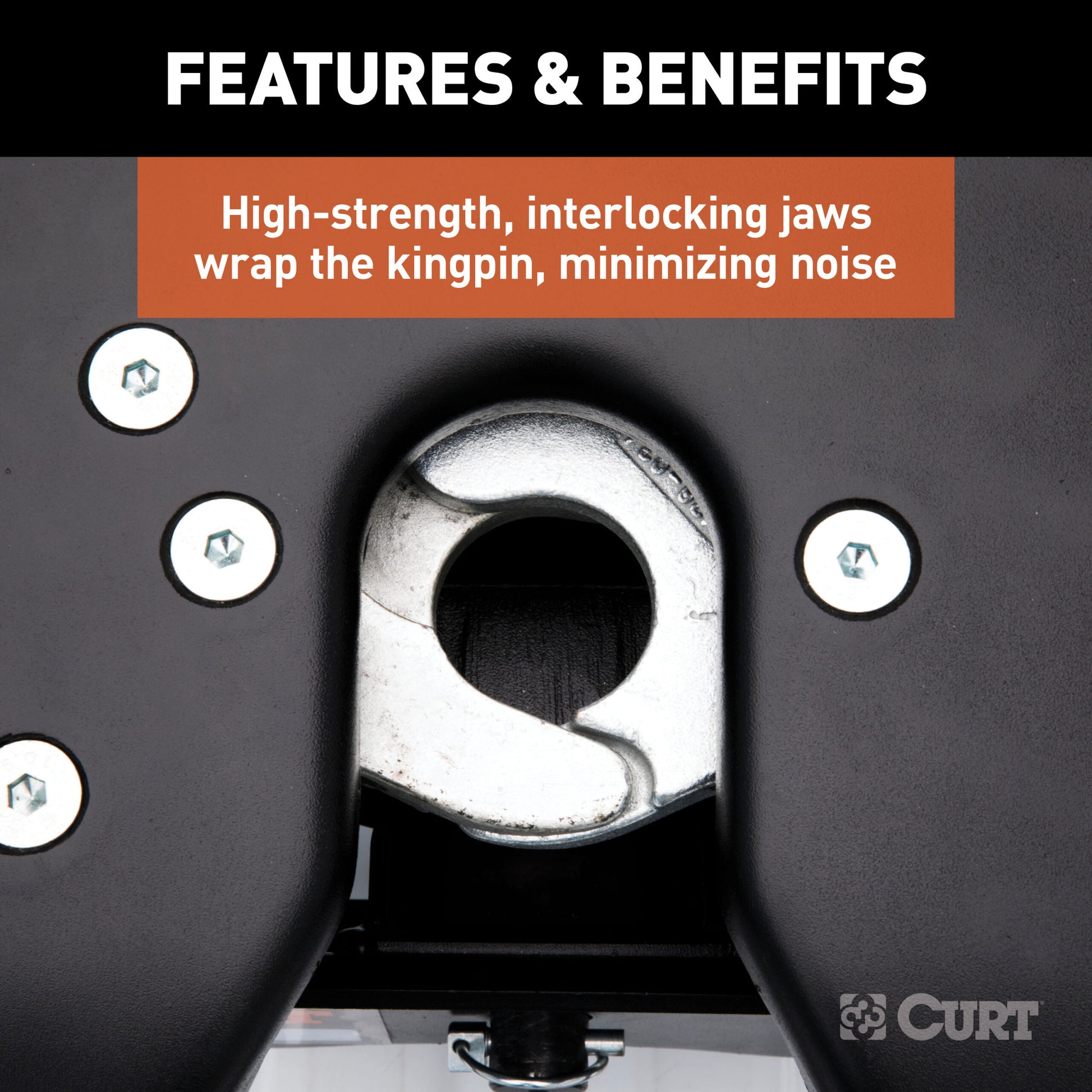 - High-strength, interlocking jaws fully wrap the kingpin to minimize noise