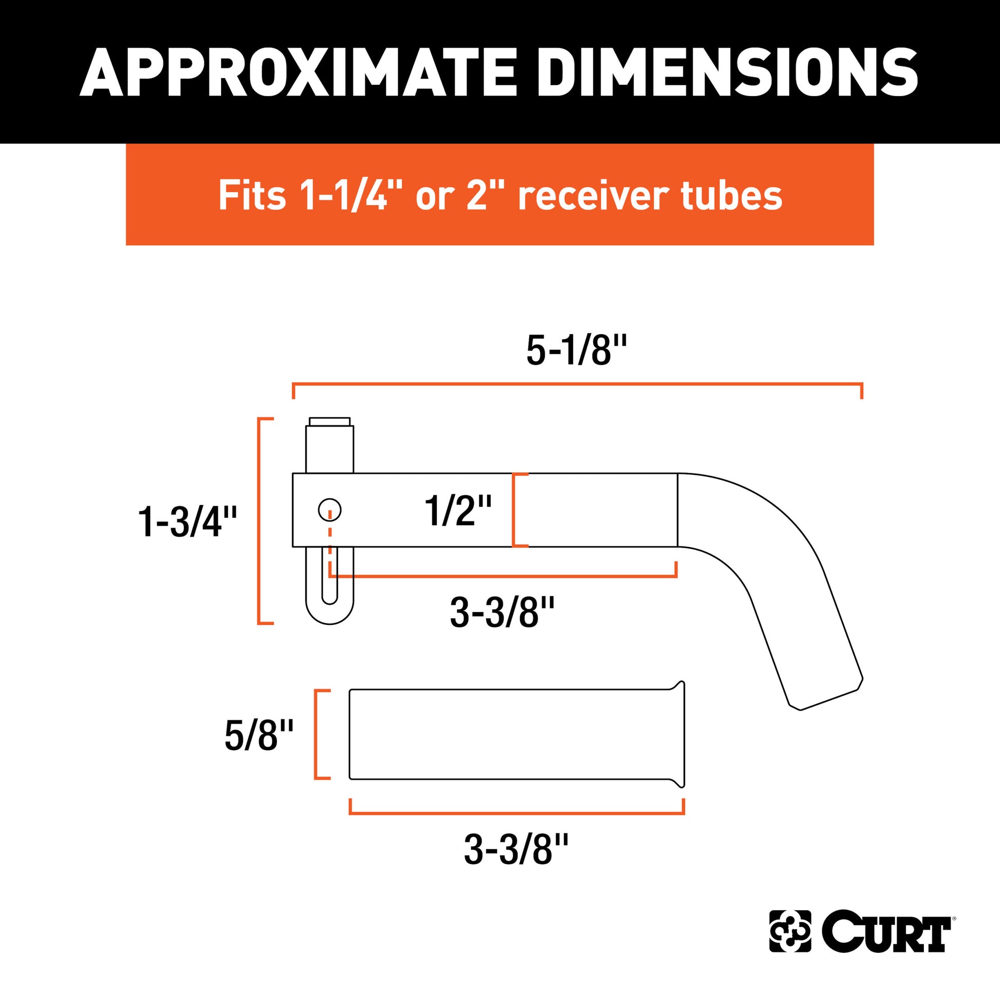 • 1/2" diameter pin with 5/8" adapter fits 1-1/4" or 2" receiver tubes
