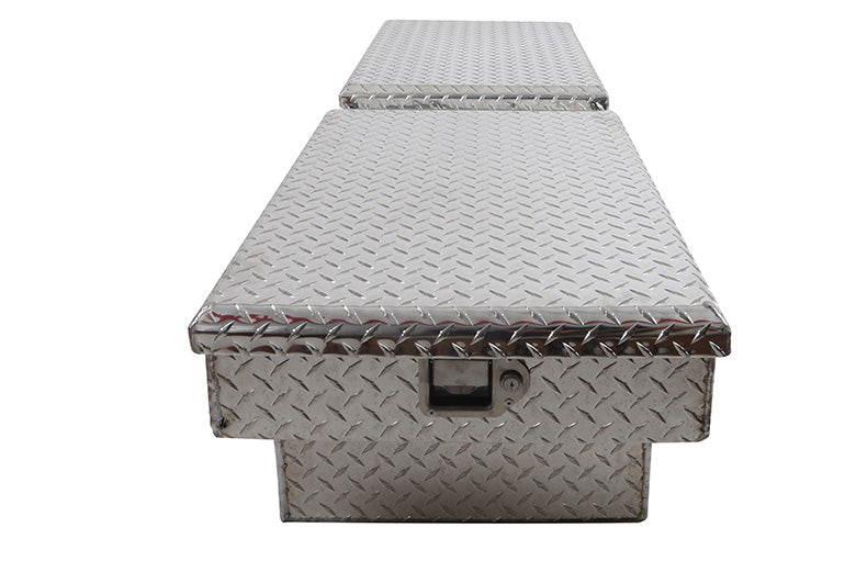 If you need full walk up access to your tools from either side of the truck bed- double lid, or Gull Wing Tool Boxes are the perfect option. Dee Zee Red Label Double Lid (Gull Wing) Crossover Boxes are made from Non-Rusting .056 Brite-Tread Aluminum with internal bends for superior rigidity throughout.