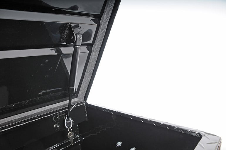 Our Red Label Utility Chest is forged out of non-rusting .056 Brite-Tread aluminum using internal bends for superior strength to create a box that can withstand years of abuse. Powder coated gloss black for a clean sharp look in the bed of your truck.