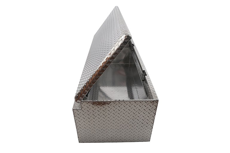 Our Red Label Utility Chest is designed with the fifth wheel in mind. It fits securely on either side of the hitch, at the front or back of your truck bed depending on your preference.