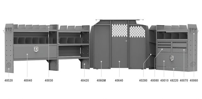 Kargo Master Van Interior Packages take the guess work out of where to begin upfitting your cargo van. With our strong easily adjustable shelving, partitions and accessories, our van packages have everything you need to put your van to work. Our professional designers and product engineers have created customized van packages for specific service categories to help you easily outfit a van based on input from experienced industry tradesmen.