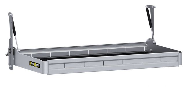 Comes with a single 36” wide x 20” deep folding shelf. Shelves are easily positioned up and down to maximize van interior space. Perfect for parcel delivery applications. Shelving is made out of lightweight and strong aluminum with HolyPan composite base while the uprights are powder coat finished steel for extra rigidity. Built in EDPM foam liner keeps cargo from sliding. Each shelf is rated to carry 150 lbs. When placed side-by-side the folding shelves can share the upright between them. Order single uprights and shelves a la carte via PNs 48007, 48367, 48487, and 48607