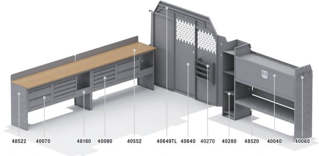 Kargo Master Van Interior Packages take the guess work out of where to begin upfitting your cargo van. With our strong easily adjustable shelving, partitions and accessories, our van packages have everything you need to put your van to work. Our professional designers and product engineers have created customized van packages for specific service categories to help you easily outfit a van based on input from experienced industry tradesmen.