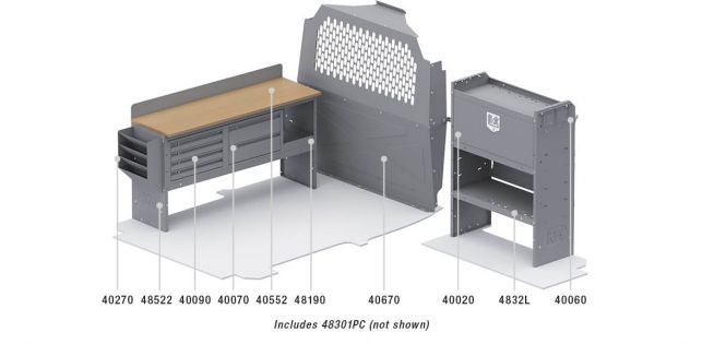 Kargo Master Van Interior Packages take the guess work out of where to begin upfitting your cargo van. With our strong easily adjustable shelving, partitions and accessories, our van packages have everything you need to put your van to work. Our professional designers and product engineers have created customized van packages for specific service categories to help you easily outfit a van based on input from experienced industry tradesmen.