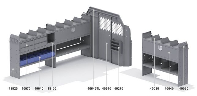 Kargo Master Van Interior Packages take the guess work out of where to begin upfitting your cargo van. With our strong easily adjustable shelving, partitions and accessories, our van packages have everything you need to put your van to work. Our professional designers and product engineers have created customized van packages for specific service categories to help you easily outfit a van based on input from experienced industry tradesmen.