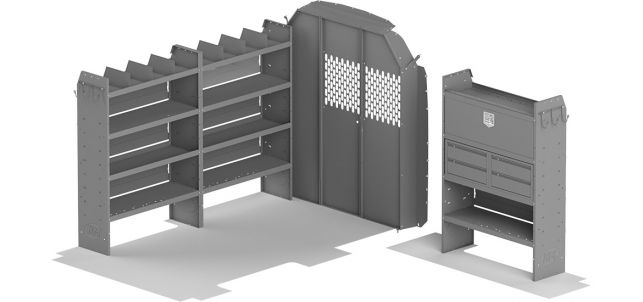 Kargo Master Van Interior Packages take the guess work out of where to begin upfitting your cargo van. With our strong easily adjustable shelving, partitions and accessories, our van packages have everything you need to put your van to work. Our professional designers and product engineers have created customized van packages for specific service categories to help you easily outfit a van based on input from experienced industry tradesmen.
