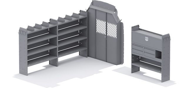 Kargo Master Van Interior Packages take the guess work out of where to begin upfitting your cargo van. With our strong easily adjustable shelving, partitions and accessories, our van packages have everything you need to put your van to work. Our professional designers and product engineers have created customized van packages for specific service categories to help you easily outfit a van based on input from experienced industry tradesmen.