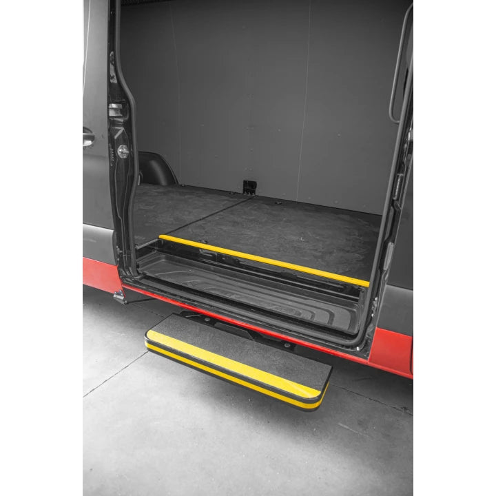 This revolutionary side door step mechanically deploys as the door is open and closed. No electrical wiring – it’s automatic, but not electric. Superior legendary quality outlasts and outperforms fixed and electric steps alike. The discreet yet highly functional design ensures a streamlined appearance while providing a practical solution for our Legends of the Road. With a focus on both form and function, this retractable side door step exemplifies the marriage of advanced engineering and user-friendly design in modern automotive technology.