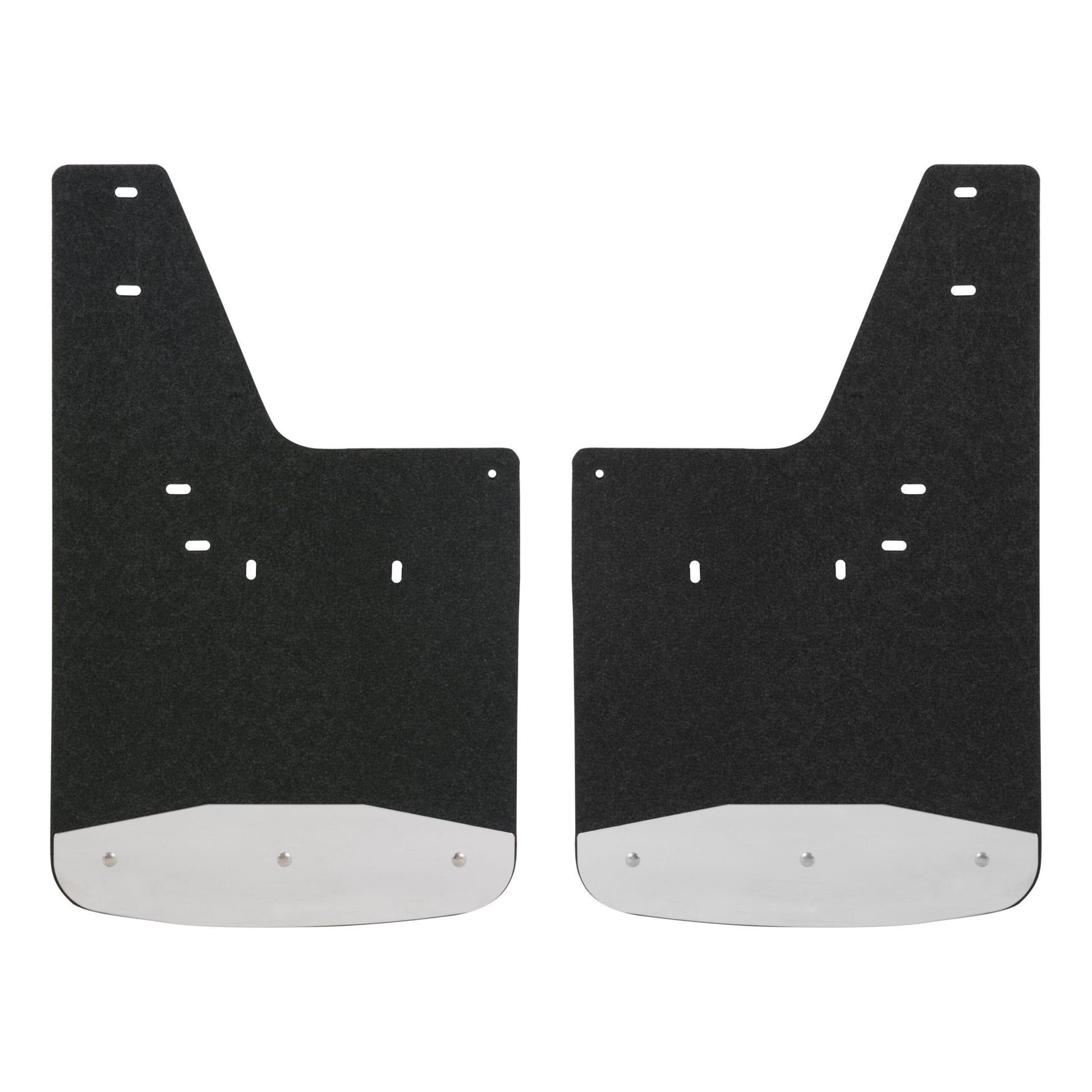 Whether you're on the job or off-roading through the wilderness, it doesn't take long for rocks and other debris to wreak havoc on the body of your truck. LUVERNE Textured Rubber Mud Guards are the perfect solution for maintaining that pristine, professional look. For the front or rear of the truck, these custom mud flaps add style and body protection. They are constructed from heavy-duty black rubber that stands up to road debris and sheds water with ease. They feature 18-gauge stainless steel plates to help protect the bottom edge and extend the life of the mud flaps. With their 3/8" thick, recycled rubber construction, Textured Rubber Mud Guards easily deflect everything from mud to gravel, protecting the body of your truck from scratches, chips and scuffs. They are also made to add a stylish accent to your truck, featuring stainless steel plates along the bottom edge of each flap. The plates are made from 18-gauge stainless steel to provide a heavy-duty, rust-resistant shield, and they feature a bright, high-polish finish for a long-lasting shine. The textured finish of the rubber mud flaps is also designed to easily hide minor scuffs and scratches and maintain a clean appearance. For an easy installation and a custom fit, these truck mud flaps are made vehicle-specific. This particular set fits specific years of the Ram 1500, 2500 and Dodge Ram 1500 (see application info to verify fitment). They install with corrosion-resistant fasteners and high-strength steel mounting brackets with a galvanized finish for long-lasting durability. Universal mud flaps are also available.