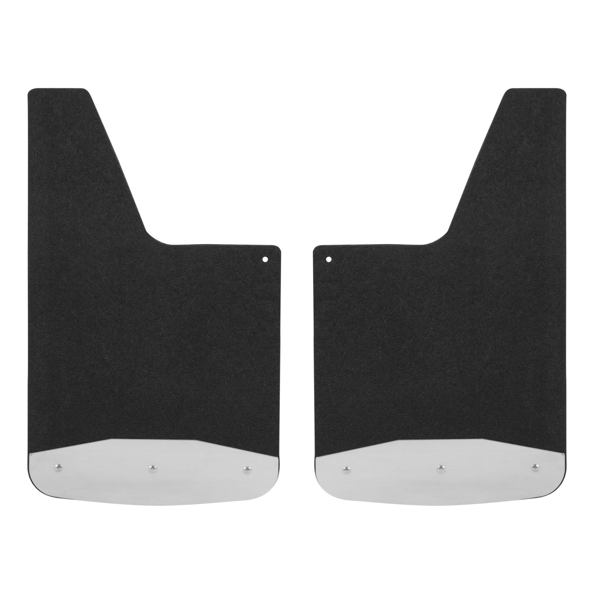 Whether you're on the job or off-roading through the wilderness, it doesn't take long for rocks and other debris to wreak havoc on the body of your truck. LUVERNE Textured Rubber Mud Guards are the perfect solution for maintaining that pristine, professional look. For the front or rear of the truck, these custom mud flaps add style and body protection. They are constructed from heavy-duty black rubber that stands up to road debris and sheds water with ease. They feature 18-gauge stainless steel plates to help protect the bottom edge and extend the life of the mud flaps. With their 3/8" thick, recycled rubber construction, Textured Rubber Mud Guards easily deflect everything from mud to gravel, protecting the body of your truck from scratches, chips and scuffs. They are also made to add a stylish accent to your truck, featuring stainless steel plates along the bottom edge of each flap. The plates are made from 18-gauge stainless steel to provide a heavy-duty, rust-resistant shield, and they feature a bright, high-polish finish for a long-lasting shine. The textured finish of the rubber mud flaps is also designed to easily hide minor scuffs and scratches and maintain a clean appearance. For an easy installation and a custom fit, these truck mud flaps are made vehicle-specific. This particular set fits specific years of the Ram 1500 (see application info to verify fitment). They install with corrosion-resistant fasteners and high-strength steel mounting brackets with a galvanized finish for long-lasting durability. Universal mud flaps are also available.