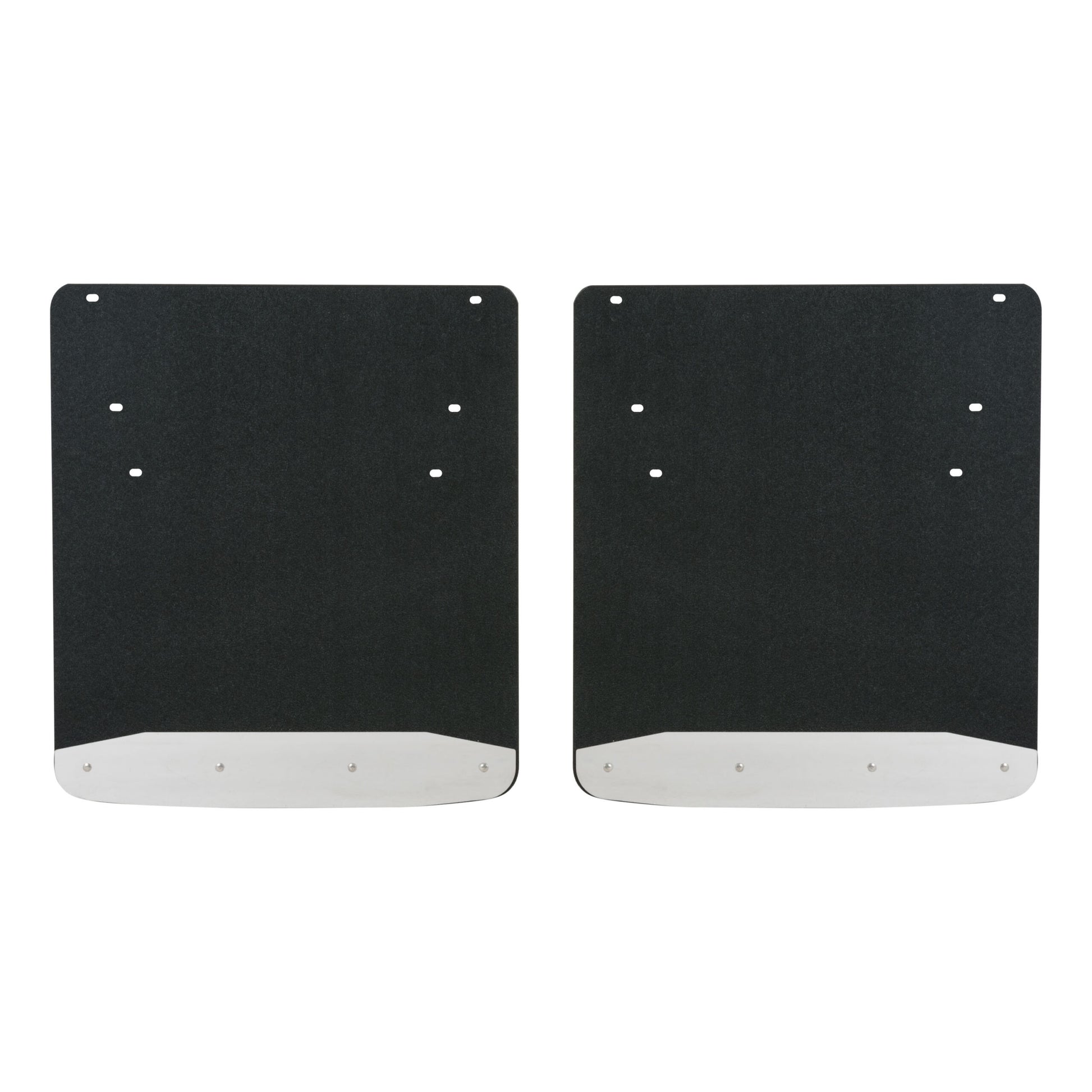 Whether you're on the job or off-roading through the wilderness, it doesn't take long for rocks and other debris to wreak havoc on the body of your truck. LUVERNE Textured Rubber Mud Guards are the perfect solution for maintaining that pristine, professional look. For the front or rear of the truck, these custom mud flaps add style and body protection. They are constructed from heavy-duty black rubber that stands up to road debris and sheds water with ease. They feature 18-gauge stainless steel plates to help protect the bottom edge and extend the life of the mud flaps. With their 3/8" thick, recycled rubber construction, Textured Rubber Mud Guards easily deflect everything from mud to gravel, protecting the body of your truck from scratches, chips and scuffs. They are also made to add a stylish accent to your truck, featuring stainless steel plates along the bottom edge of each flap. The plates are made from 18-gauge stainless steel to provide a heavy-duty, rust-resistant shield, and they feature a bright, high-polish finish for a long-lasting shine. The textured finish of the rubber mud flaps is also designed to easily hide minor scuffs and scratches and maintain a clean appearance. For an easy installation and a custom fit, these truck mud flaps are made vehicle-specific. This particular set fits specific years of the Ram 3500 (see application info to verify fitment). They install with corrosion-resistant fasteners and high-strength steel mounting brackets with a galvanized finish for long-lasting durability. Universal mud flaps are also available.
