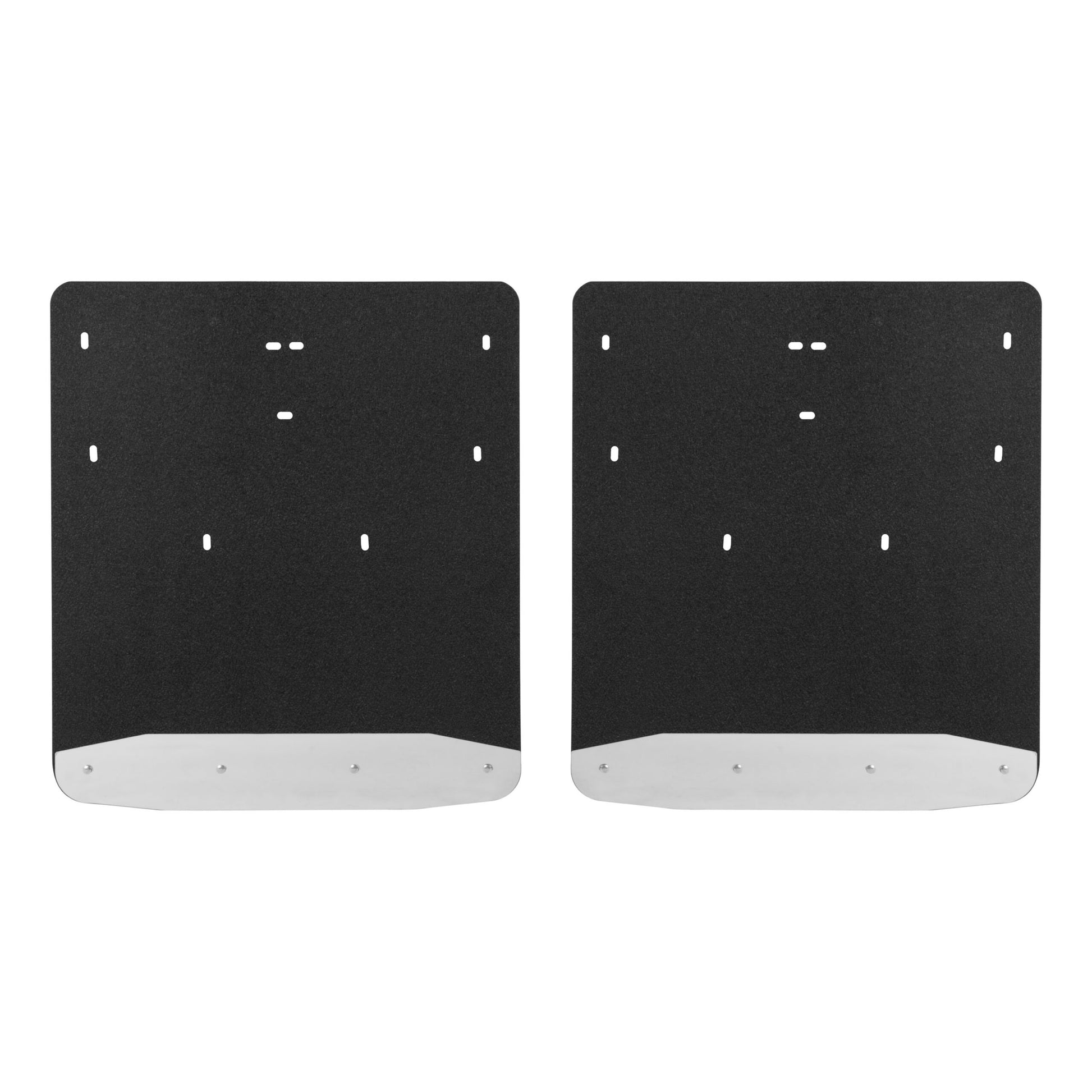 Whether you're on the job or off-roading through the wilderness, it doesn't take long for rocks and other debris to wreak havoc on the body of your truck. LUVERNE Textured Rubber Mud Guards are the perfect solution for maintaining that pristine, professional look. For the front or rear of the truck, these custom mud flaps add style and body protection. They are constructed from heavy-duty black rubber that stands up to road debris and sheds water with ease. They feature 18-gauge stainless steel plates to help protect the bottom edge and extend the life of the mud flaps. With their 3/8" thick, recycled rubber construction, Textured Rubber Mud Guards easily deflect everything from mud to gravel, protecting the body of your truck from scratches, chips and scuffs. They are also made to add a stylish accent to your truck, featuring stainless steel plates along the bottom edge of each flap. The plates are made from 18-gauge stainless steel to provide a heavy-duty, rust-resistant shield, and they feature a bright, high-polish finish for a long-lasting shine. The textured finish of the rubber mud flaps is also designed to easily hide minor scuffs and scratches and maintain a clean appearance. For an easy installation and a custom fit, these truck mud flaps are made vehicle-specific. This particular set fits specific years of the Ford F350 Super Duty and F450 Super Duty (see application info to verify fitment). They install with corrosion-resistant fasteners and high-strength steel mounting brackets with a galvanized finish for long-lasting durability. Universal mud flaps are also available.