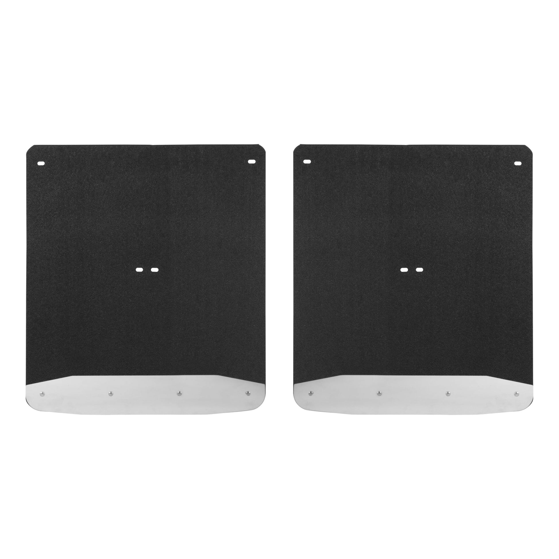 Whether you're on the job or off-roading through the wilderness, it doesn't take long for rocks and other debris to wreak havoc on the body of your truck. LUVERNE Textured Rubber Mud Guards are the perfect solution for maintaining that pristine, professional look. For the front or rear of the truck, these custom mud flaps add style and body protection. They are constructed from heavy-duty black rubber that stands up to road debris and sheds water with ease. They feature 18-gauge stainless steel plates to help protect the bottom edge and extend the life of the mud flaps. With their 3/8" thick, recycled rubber construction, Textured Rubber Mud Guards easily deflect everything from mud to gravel, protecting the body of your truck from scratches, chips and scuffs. They are also made to add a stylish accent to your truck, featuring stainless steel plates along the bottom edge of each flap. The plates are made from 18-gauge stainless steel to provide a heavy-duty, rust-resistant shield, and they feature a bright, high-polish finish for a long-lasting shine. The textured finish of the rubber mud flaps is also designed to easily hide minor scuffs and scratches and maintain a clean appearance. For an easy installation and a custom fit, these truck mud flaps are made vehicle-specific. This particular set fits specific years of the Chevy Silverado 3500 HD and GMC Sierra 3500 HD (see application info to verify fitment). They install with corrosion-resistant fasteners and high-strength steel mounting brackets with a galvanized finish for long-lasting durability. Universal mud flaps are also available.