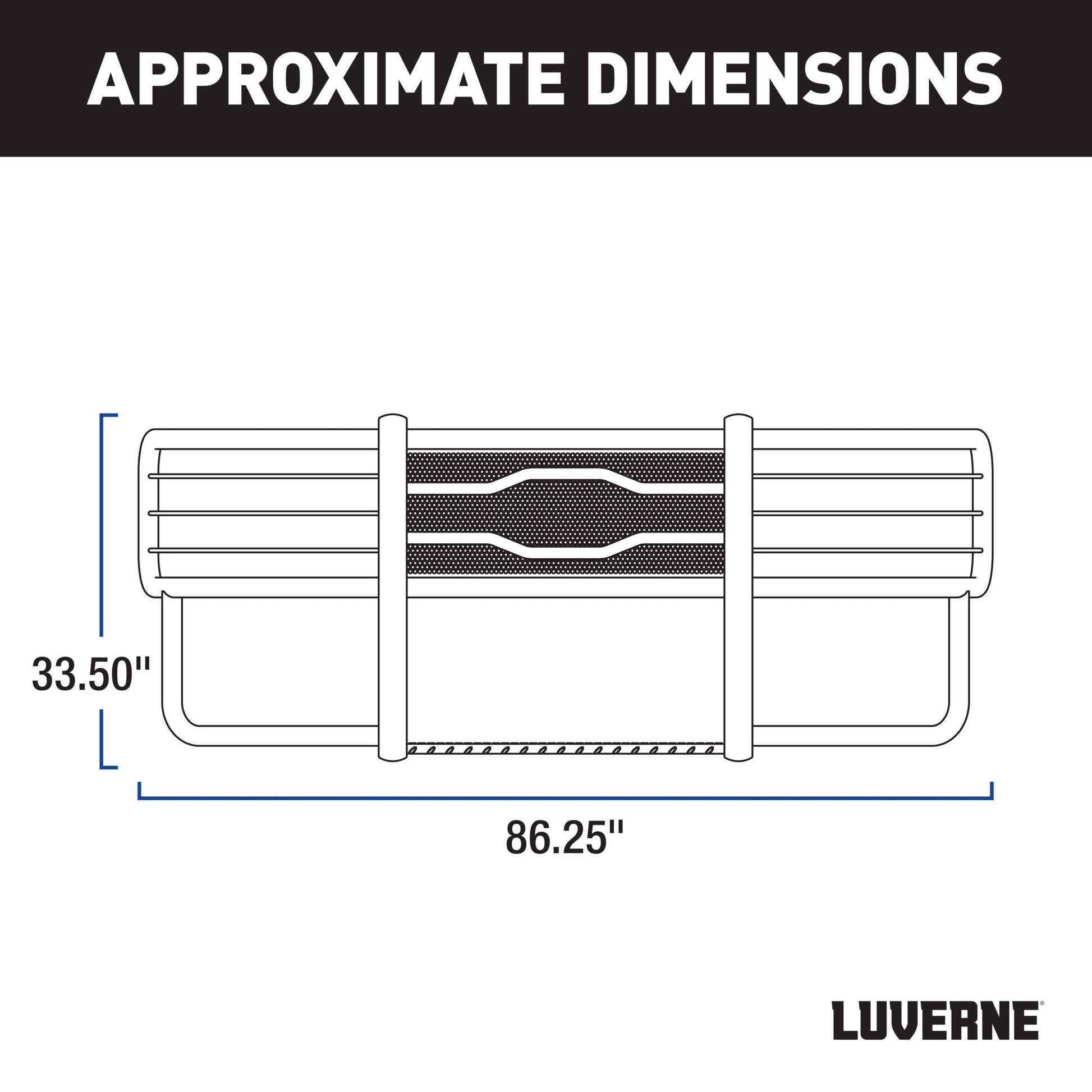 Basic. Standard. Stock. Some words were never intended to describe your truck, and it takes a certain type of hardworking truck accessory to meet your expectations. The LUVERNE Prowler Max grille guard equips your truck to tackle the toughest of jobs with its uncommon construction, comprehensive protection and arsenal of extra features. It begins with a bold, punched steel screen center section. This heavy-gauge mesh not only adds style to the Prowler Max but also increases protection for your grille, shielding it from rocks, debris and other threats. The center section features our signature logo reveal with contoured horizontal tubes to add even more protection and increase structural stability. Below the center section is a built-in 4" wide step with non-skid, diamond treads. The step blends perfectly with the grille guard and provides easier access when working under the hood, particularly on large, full-size pickup trucks. The Prowler Max grille guard also distinguishes itself with its vehicle-specific wraparound ring assembly. The double-stacked side brush guards uniquely contour to the front end of each truck application and feature 3/8" wires for increased headlight protection. This particular custom truck grille guard fits specific years of the Ford F250 Super Duty and F350 Super Duty (see fitment info to verify). To give it the muscle to stand behind its attitude, we construct the Prowler Max from one-piece, 2" diameter tubular steel. Its heavy-duty uprights bolt directly to the frame of the truck, using high-strength steel brackets and a no-drill installation (NOTE: Brackets for attaching this grille guard are included but shipped separately). To finish things off, the Prowler Max truck grille guard is available in two finish options. The E-coat and black powder coat finish offers maximum durability, while the high-polish stainless steel provides a bright, no-rust shine.