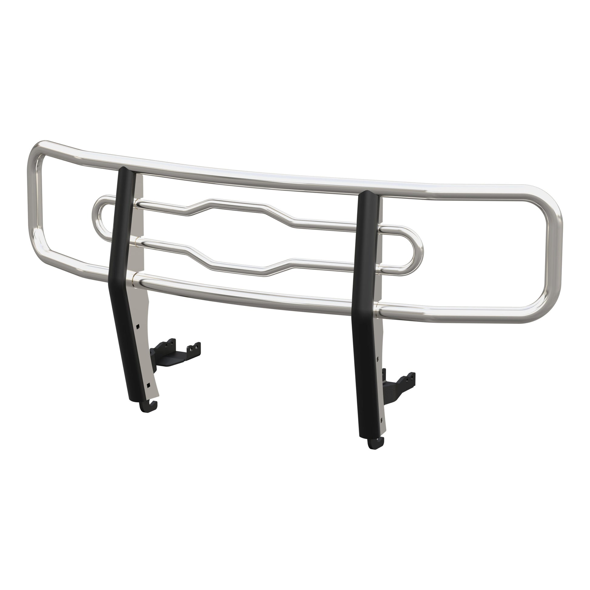Adding accessories to your truck is all about highlighting and showing off its existing features, and no front-end accessory shows off these features quite like a LUVERNE grille guard. Our 2" tubular grille guard features our signature logo reveal and a vehicle-specific fit -- all to maximize front-end protection and truly make it all about your truck. It starts with our classic center section. The horizontal tubes are contoured to create our signature logo reveal, showing off your vehicle's badge with pride. The tubes also add extra protection for your vehicle's grille. To add some beef to the front end of your vehicle, the LUVERNE 2" brush guard is built tough. It is constructed from high-strength steel, assembled right here in the USA, to ensure the utmost quality. The frame-mounted uprights provide a solid structural base and are shielded with extruded rubber covers to better protect the finish. We also add a polished stainless steel backing to the uprights, giving them a clean, finished appearance that will outlast rust. Our 2" tubular grille guards are available in a durable textured black powder coat or a bright chrome-plated finish to suit the look of your own unique truck. To finish off the LUVERNE 2" steel brush guard and truly make it an accessory fit for your vehicle, we make each one vehicle-specific. This means no drilling necessary during the install and compatibility with your factory tow hooks on most models. This particular custom grille guard fits specific years of the Chevy Silverado 1500 and GMC Sierra 1500 (see application info to verify fitment). It mounts directly to the frame using strong steel brackets, and the brackets are covered in a black powder coat finish to ensure long-lasting durability. NOTE: Ring assembly and upright package included but shipped separately.