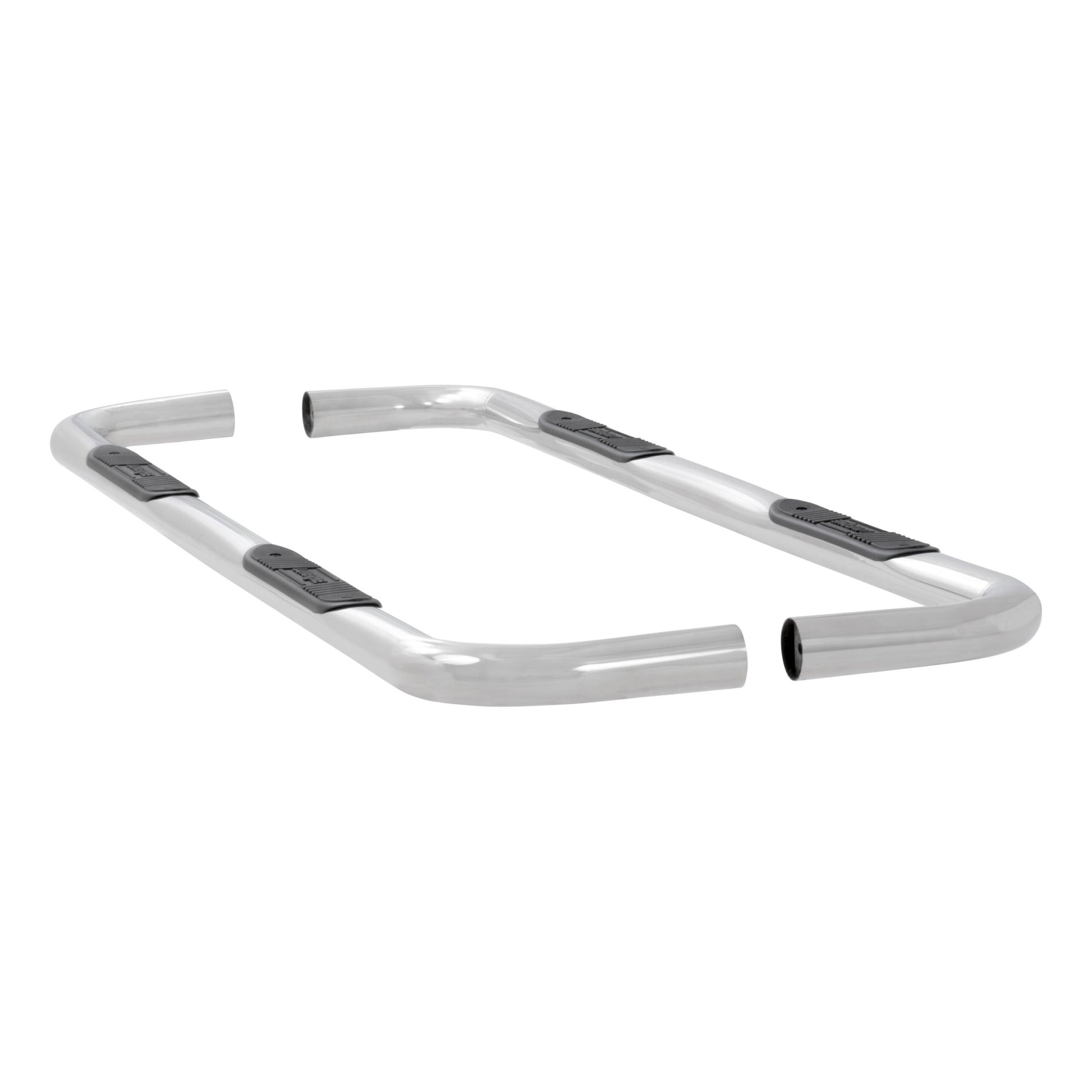 LUVERNE 3" round nerf bars provide a rust-free accent and a reliable step up into your truck or SUV. They feature a vehicle-specific design to contour to each unique make and model, and they are constructed from durable stainless steel to be impervious to rust. With non-skid step pads and heavy-duty, mandrel-bent tubing, these 3" nerf bars offer safe vehicle entry and exit, and they are available in two finish options for the look that best complements your vehicle. One of the greatest threats to nerf bars, running boards and side steps is rust. Whether you're braving the uncertainty of the off-road trail or just commuting back and forth to work every day, rain, road salt and dirt can quickly cover your nerf bars in a layer of unsightly rust. That is why both finish options of our 3" round nerf bars begin with heavy-duty stainless steel tubing. Stainless steel makes these nerf bars strong and rust-free, ensuring a reliable step and a stylish accent for your vehicle, mile after mile. We then finish our 3" nerf bars in your choice of high-polish stainless steel for a bright, clean look or a durable, textured black powder coat for ultimate corrosion resistance. While rust protection is a vital attribute of any side accessory, a custom fit is also important. Our 3" nerf bars are assembled right here in the USA from mandrel-bent tubing to give them a smooth, sleek appearance. Each one is designed vehicle-specific to contour to the unique shape of each make and model. The tough, factory-installed step pads are also custom-placed to match the layout of your vehicle, featuring a rugged, non-skid surface to provide a comfortable step and safe entry and exit every time. LUVERNE 3" round nerf bars install using high-strength vehicle-specific mounting brackets for a perfect fit. The brackets allow for complete elimination of drilling during the install, and they feature a durable black powder coat finish for lasting protection against corrosion.