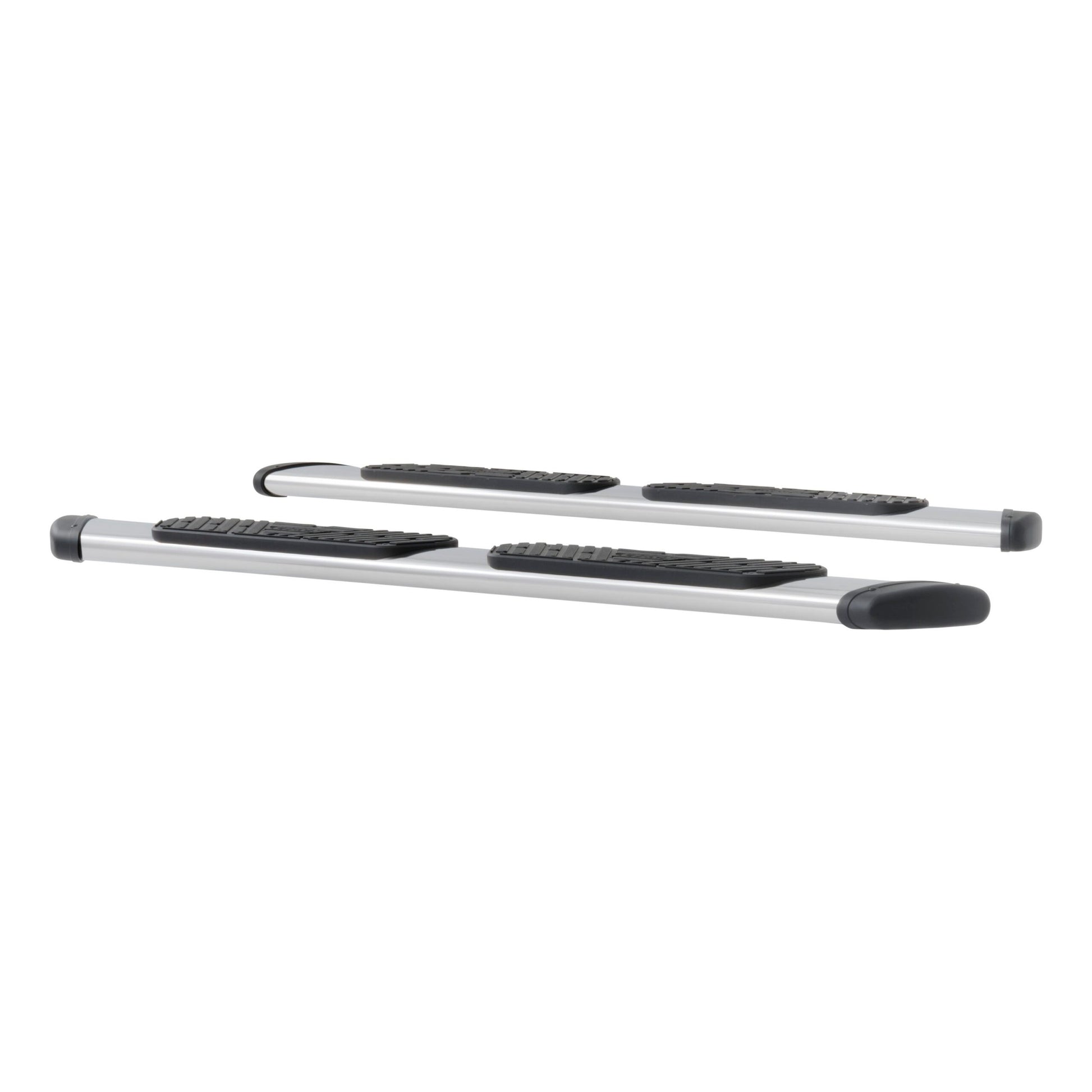 Not everyone understands the status that comes with owning a full-size truck or SUV, but for those who do, LUVERNE Regal 7 oval side steps are the side accessory of choice. They are the largest oval nerf bars on the market, featuring a patented design, non-skid step pads and a sleek nerf bar styling. Built on the idea that a deluxe ride needs a deluxe entrance, these 7" ovals have a width comparable to some of the largest running boards available. This, combined with the classic styling of popular nerf bars, allows Regal 7 oval side steps to easily live up to their name. Each is set with full-width step pads that offer a non-skid surface for ultimate comfort and safety. They are also capped on each end with contoured end caps, giving them a professional look and added protection against small rocks and road debris. Both the step pads and end caps are factory-installed and securely bolted in place. To make sure these deluxe side steps maintain their classy appearance, we construct them from stainless steel. This gives them the durability to outlast rust through every season of the year, and the strength to be offer reliable footing with every climb. They are available in a high-polish stainless steel finish for a bright, eye-catching shine or a durable black powder coat for a tough, no-nonsense accent. When it comes to our Regal 7 oval side steps, we don't trust anyone else to build them with uncompromising quality. We design each one for a vehicle-specific fit. This particular set of side steps is designed to fit specific years of the Ford F150 (see application information to verify vehicle fitment). They install using a 3" wide channel on the bottom side and high-strength steel brackets with a durable black powder coat finish (NOTE: The mounting brackets for these steps are included but shipped separately).