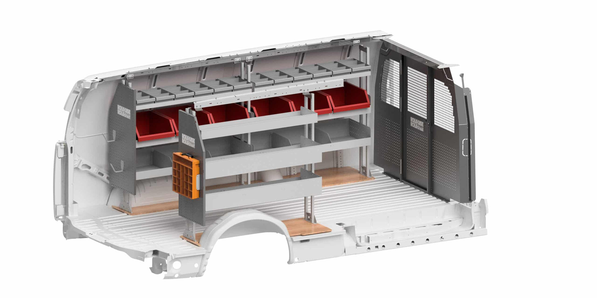Van shelving Chevy Express Americas Most Popular Bin Package with Standard Set back Partition & Anchor kit