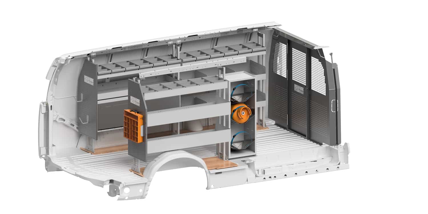 Van shelving Chevy Express 155 wb HVAC Bin Package with Standard Set back Partition & Anchor kit