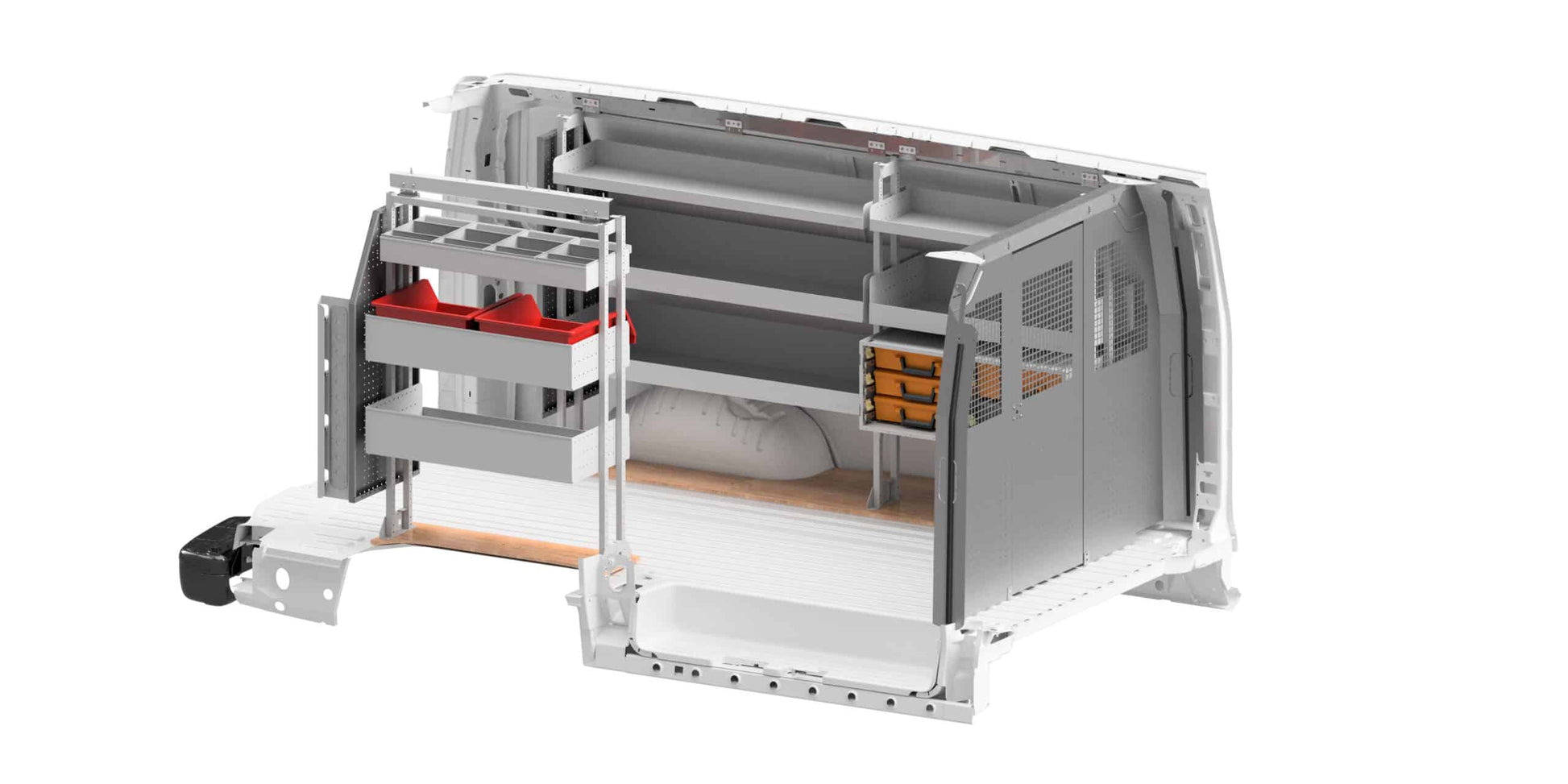 Van shelving Chevy Express Electrical Bin Package with Standard Set back Partition & Anchor kit