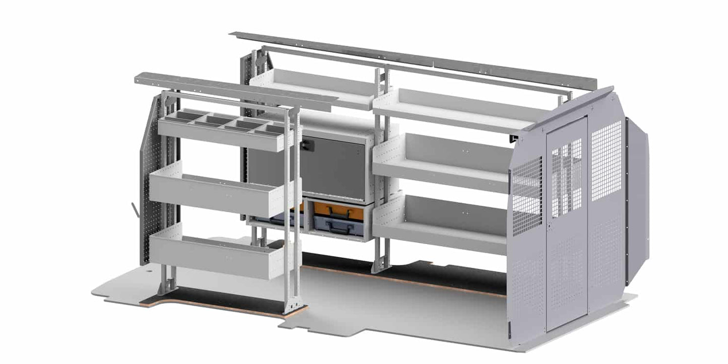 Ford Transit 130″ WB Low Roof General Bin Package with Standard Set back Partition & Anchor kit