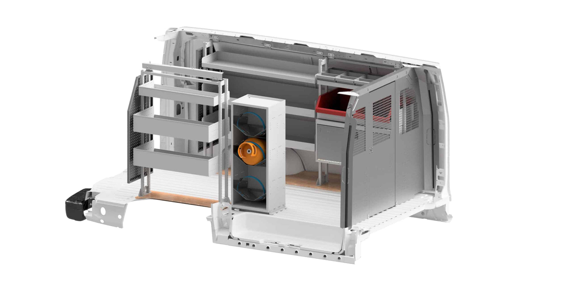Van shelving Chevy Express HVAC Bin package with Standard Set back Partition & Anchor kit