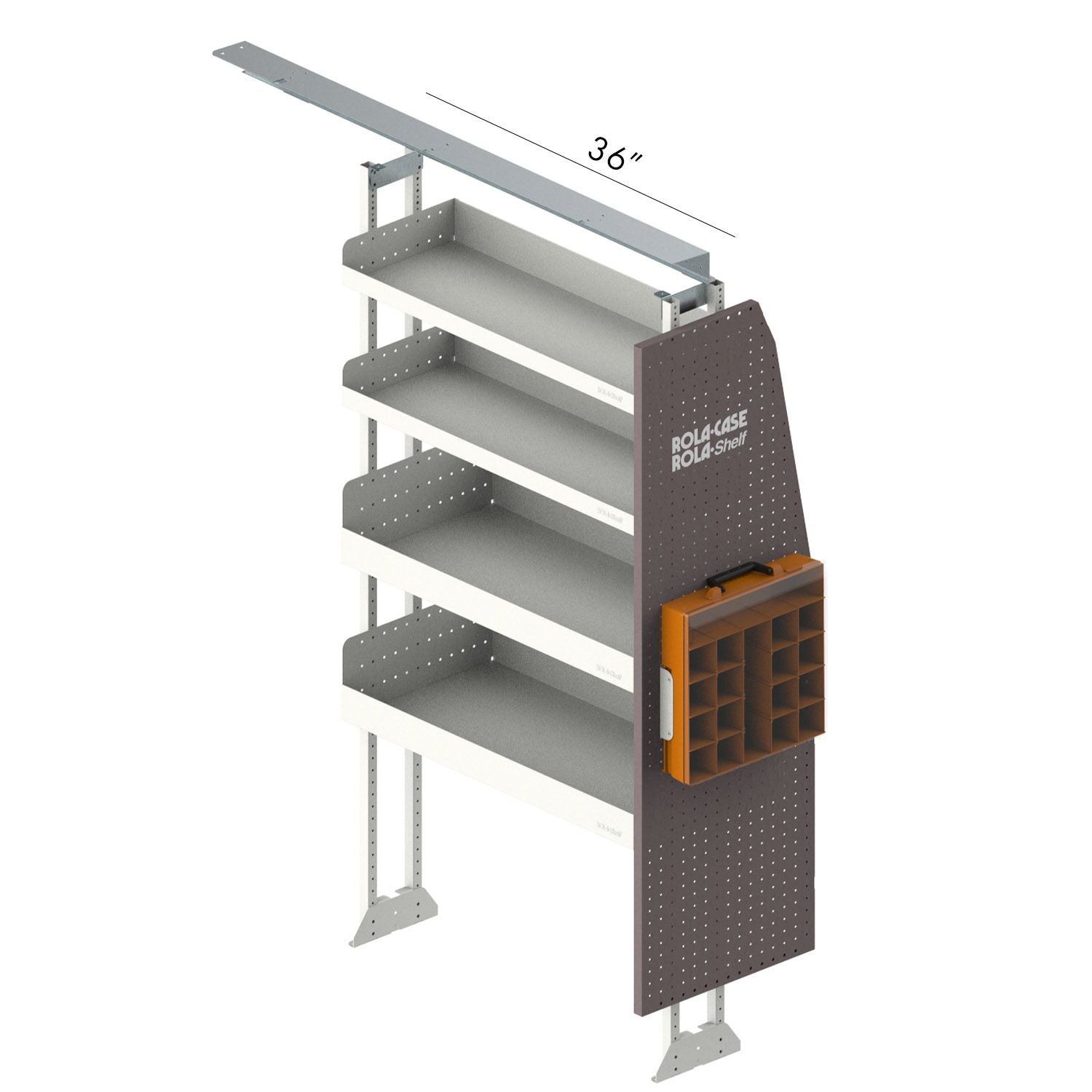 Americas Most Popular Bin package - Passenger side only Length: 36" Height: 79" - Comes with instructions to cut post down to your vehicle height Depth: 2 x 12" & 2 x 16" shelves Number Of Shelves: 4 Accessories: Parts organizer & Vertical case holder End Panel: Yes Finish: Powder Coated Color: Oyster & hammertone Material: Steel Pre Assembled: No Drilling Required: Yes Anchor kit: Comes with a universal kit - We recommend the vehicle specific brackets to cut the install time down and to aid in the installation. Individual Product codes: 1 x RSSFR/HD/80/2006 2 x RSSHL/85 1 x RSSHL/86-2 (set of 2) 1 x RSPEP/MDRF/R 1 x RC001/CL 1 x RCVCH