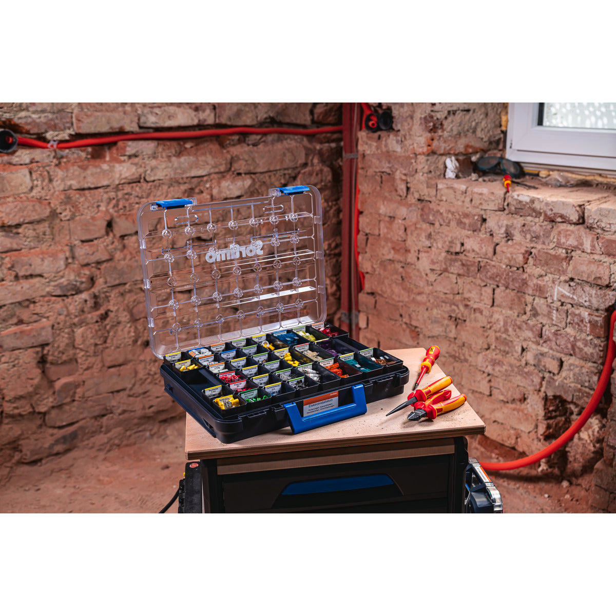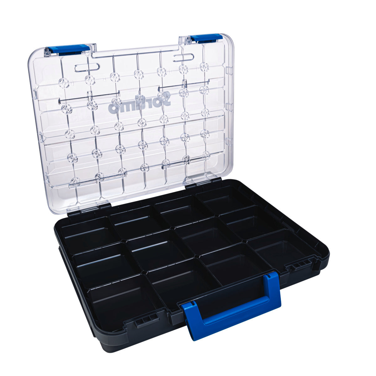 The Sortimo T-BOXX is revolutionising your working day. The transparent lid ensures that you can immediately see and safely transport all your small components. A special grid on the base and additional ‘crowns’ in the lid ensure that inset boxes are held securely in place to prevent their contents from becoming mixed up. Flexibly arrange the boxes as required and remove individual boxes at any time. However, T-BOXXes are more than just a practical organiser and transport system: they make you more efficient in your day-to-day work: you save time searching for materials and can also keep an eye on the stock levels of small components. Made of robust, lightweight plastic, T-BOXXes are impact-resistant and ideal for a wealth of uses. They are easy to use, thanks to their sturdy handle and the wide opening angle of the lid, which provides unrestricted access to your materials. T-BOXXes 320 and 330 can be seamlessly integrated into all Sortimo van racking systems and the WorkMo, ensuring the end-to-end transport of your small components from your store to your place of work. The compact T-BOXX 120, a new addition to the range, expands the product range and can be conveniently joined to the lid of the larger models.(Pictures are similar, decorative material not included; shipping only within the U.S.)