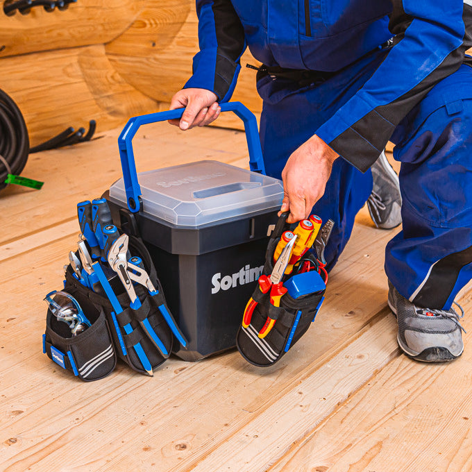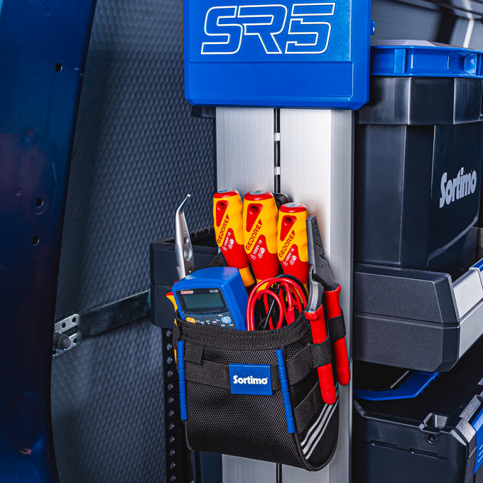 The tool bag teams up perfectly with the ProClick Holder on your tool belt. This means that you always have the right tool and consumable to hand, and this saves lots of time when you are working up a ladder. The tool bag can also be used as a flexible and intelligent storage system on the SR5 van racking, in the C-BOXX, the tool carriage or on the AutoAssistant.