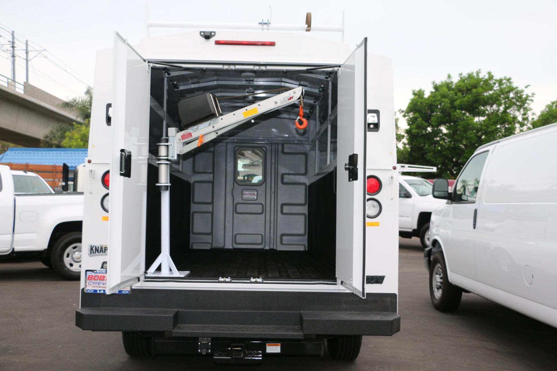 SpitzLift Service Body Crane - Enclosed Service Body - High Roof - Rear Door - 650 lbs. Capacity