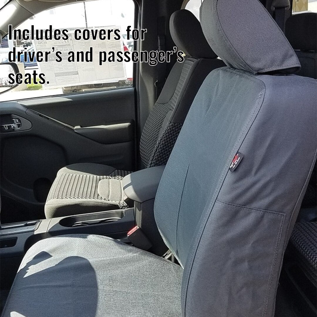 TigerTough seat covers for Frontier bucket seats. This set includes covers for driver and passenger seat backs, seat bottoms, and headrests.