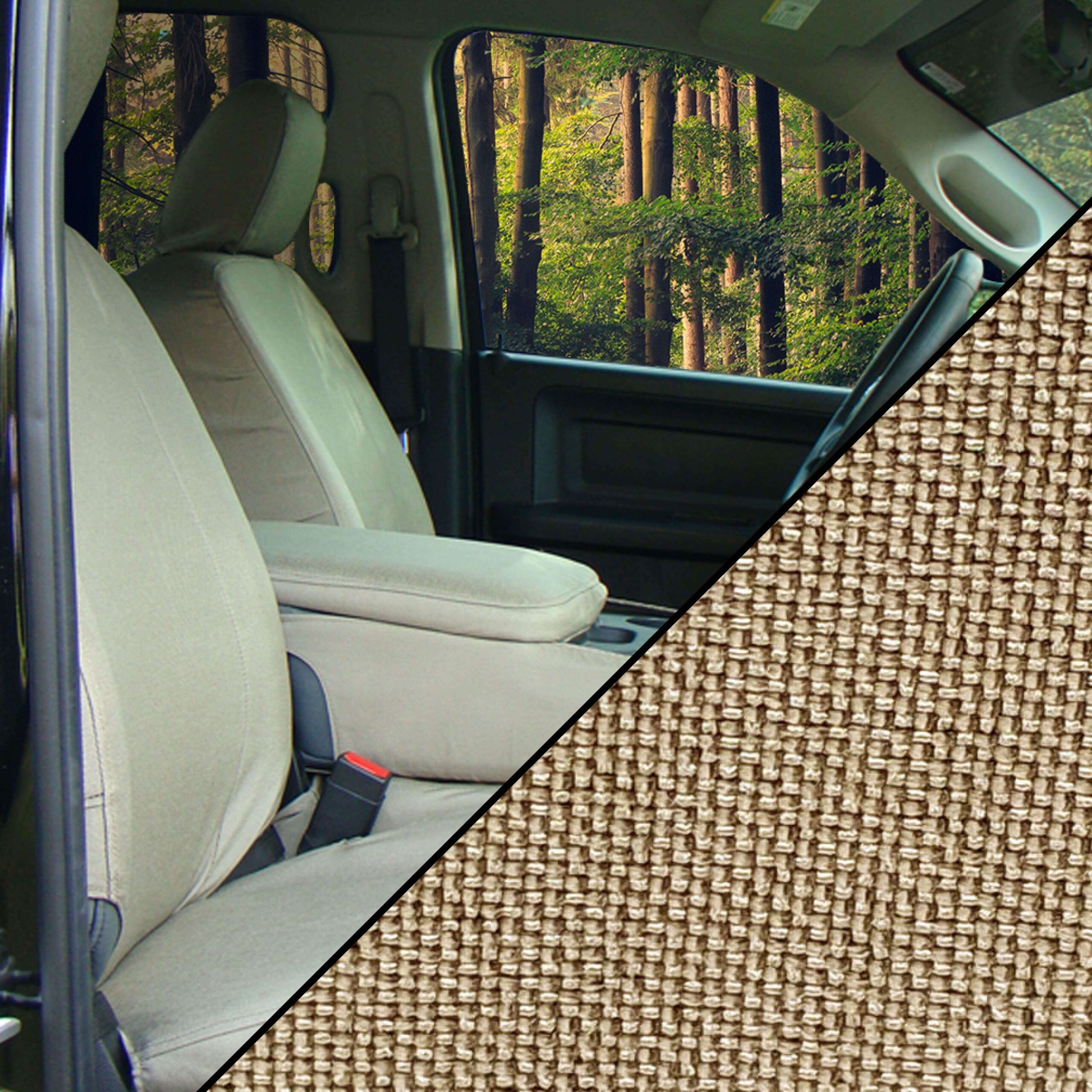 We use American Made 1000 denier Cordura for every work truck seat cover. They're precision cut so they fit right, they're sewn by hand & double stitched to make sure they still look good in 10 years and, finally, every single cover is inspected to make sure it's perfect before it leaves the factory.