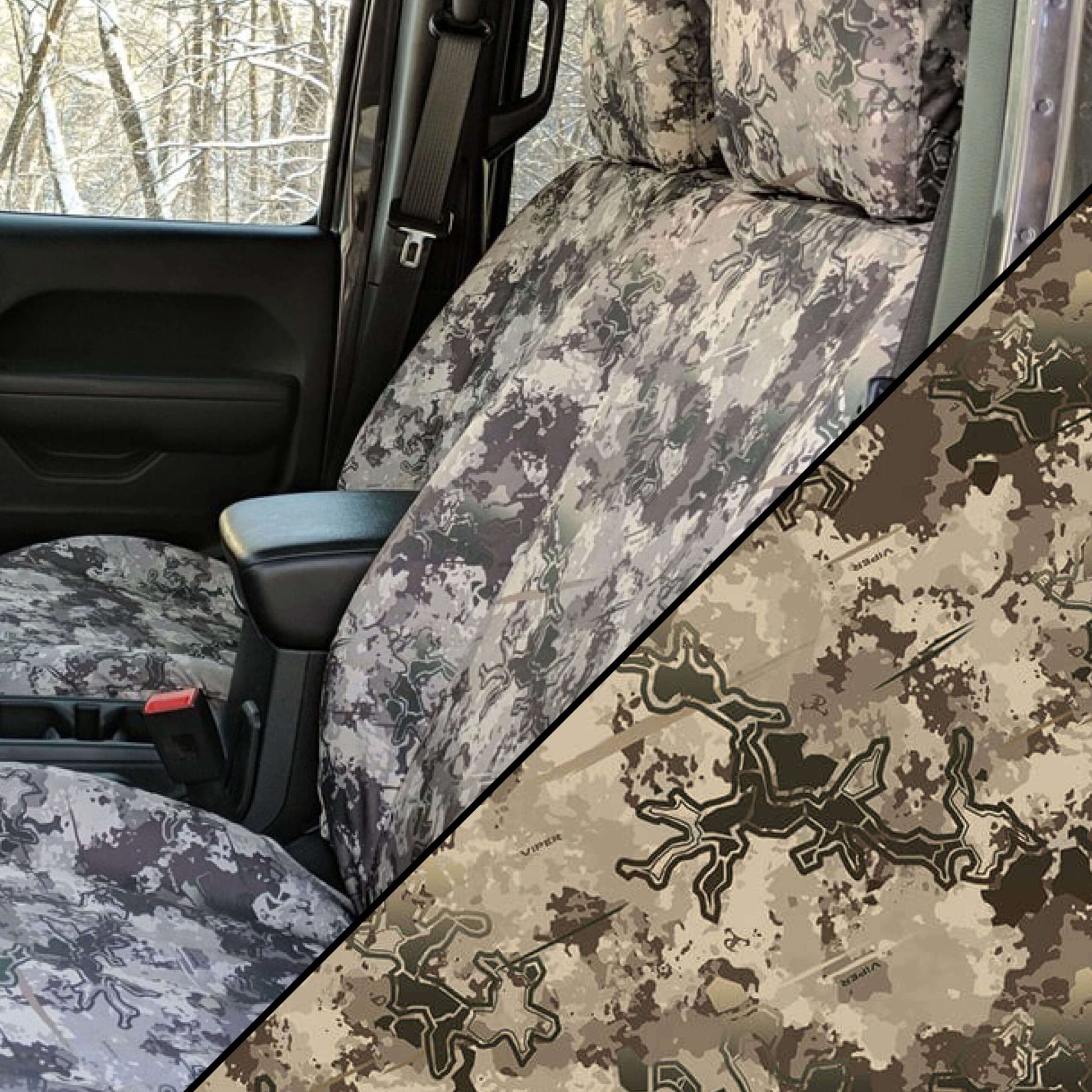 TigerTough seat covers for Ram truck bucket seats. This set includes covers for driver and passenger seat backs, seat bottoms, and headrests.