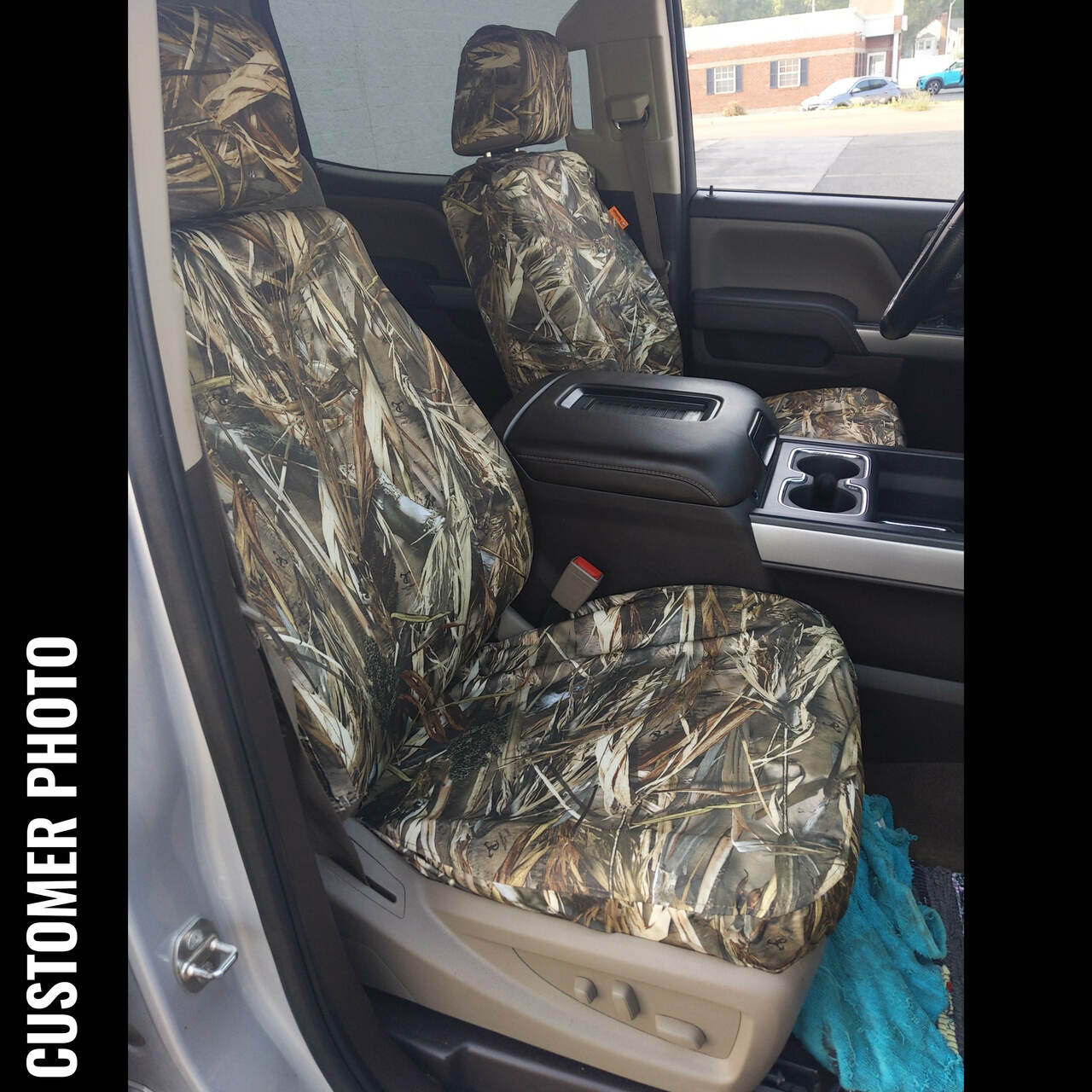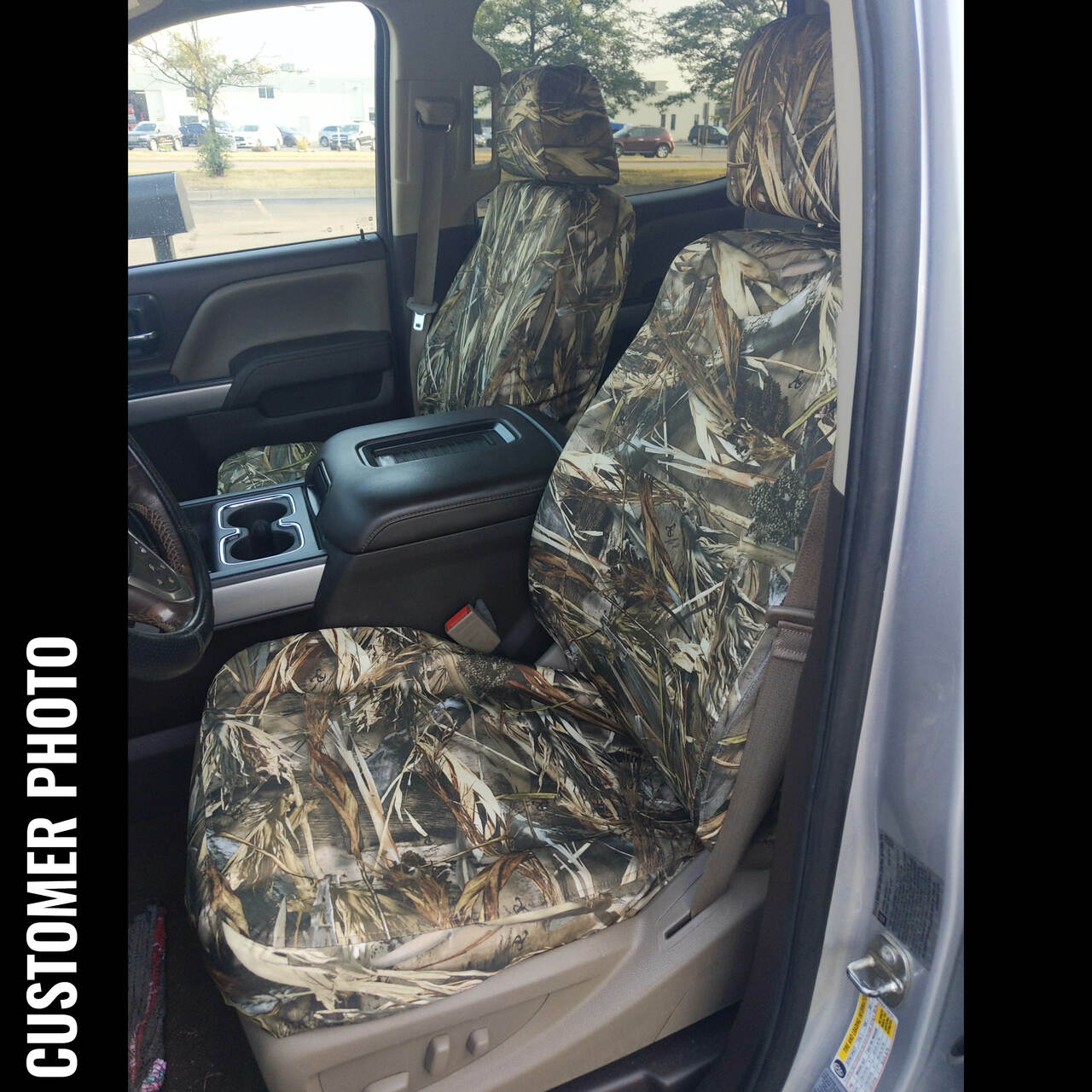 TigerTough seat covers for Chevrolet & GMC bucket seats. This set includes covers for driver and passenger seat backs, seat bottoms, and headrests.