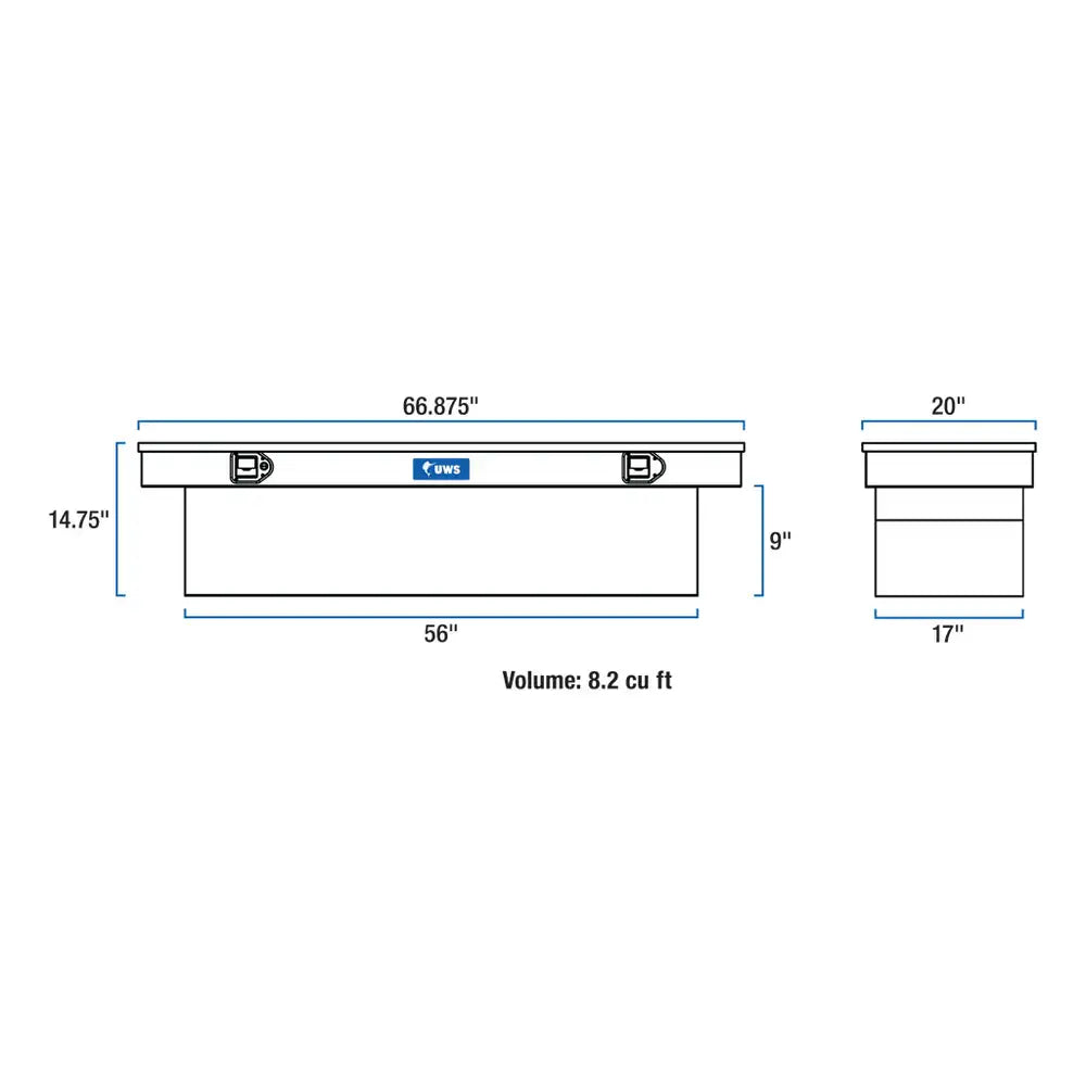 The UWS crossover truck tool box is a trusted storage solution because it features our patented RigidCore™ lid design and enhanced aluminum construction. The lid is filled with a solid foam that strengthens it against bending or warping, and it has a self-opening mechanism for convenient operation. This truck tool box is also built with extra-thick, one-piece aluminum to be strong and highly resistant to corrosion.