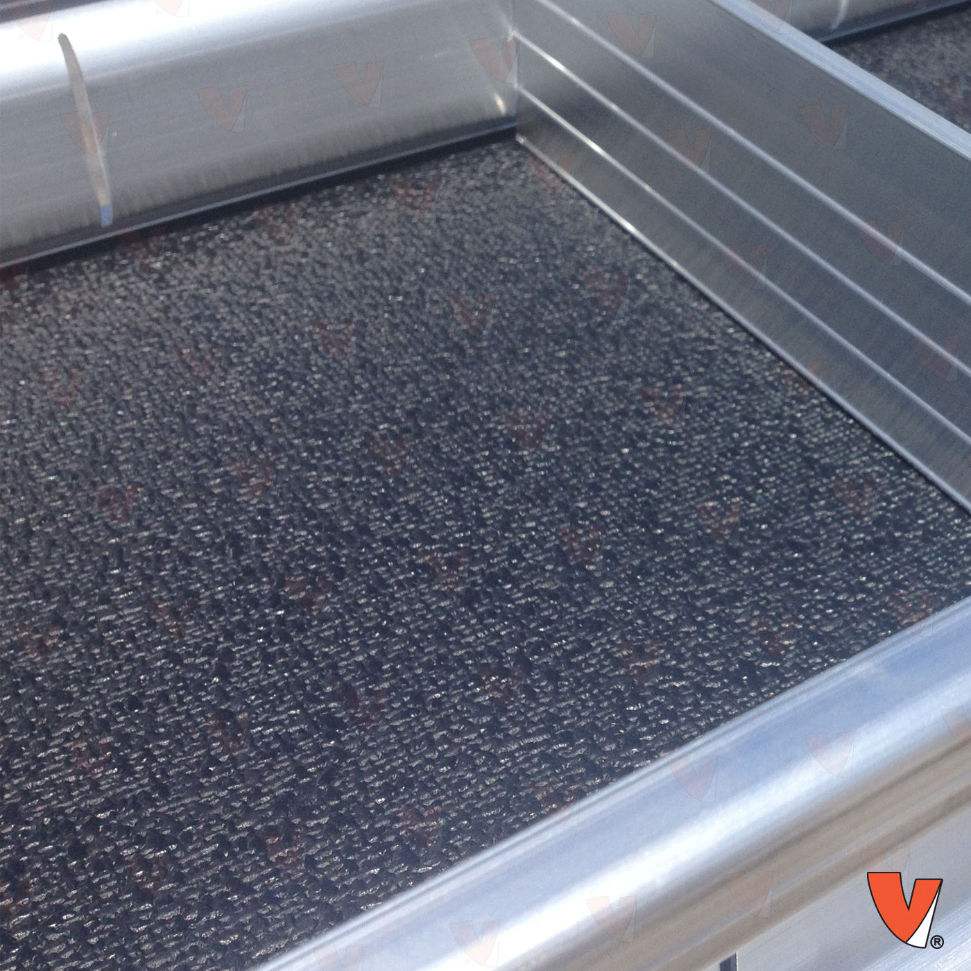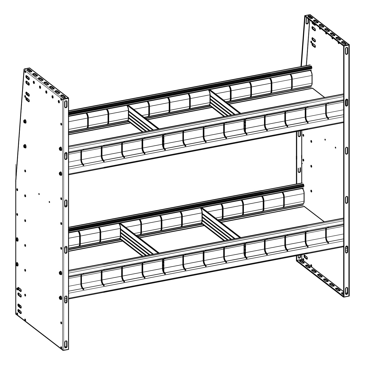 Lightweight aluminum cargo van shelves from Vantech. Constructed of aluminum with 1/2" plywood shelves wrapped in non-slip vinyl. Safely store and organize your tools, hardware, materials, and other items.