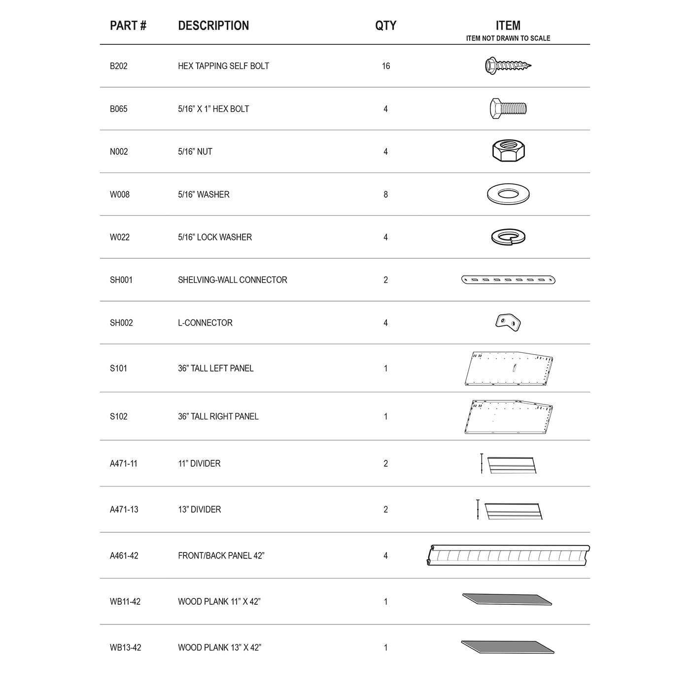 • Hardware to secure shelving to wall included (hardware for attaching to floor not included)