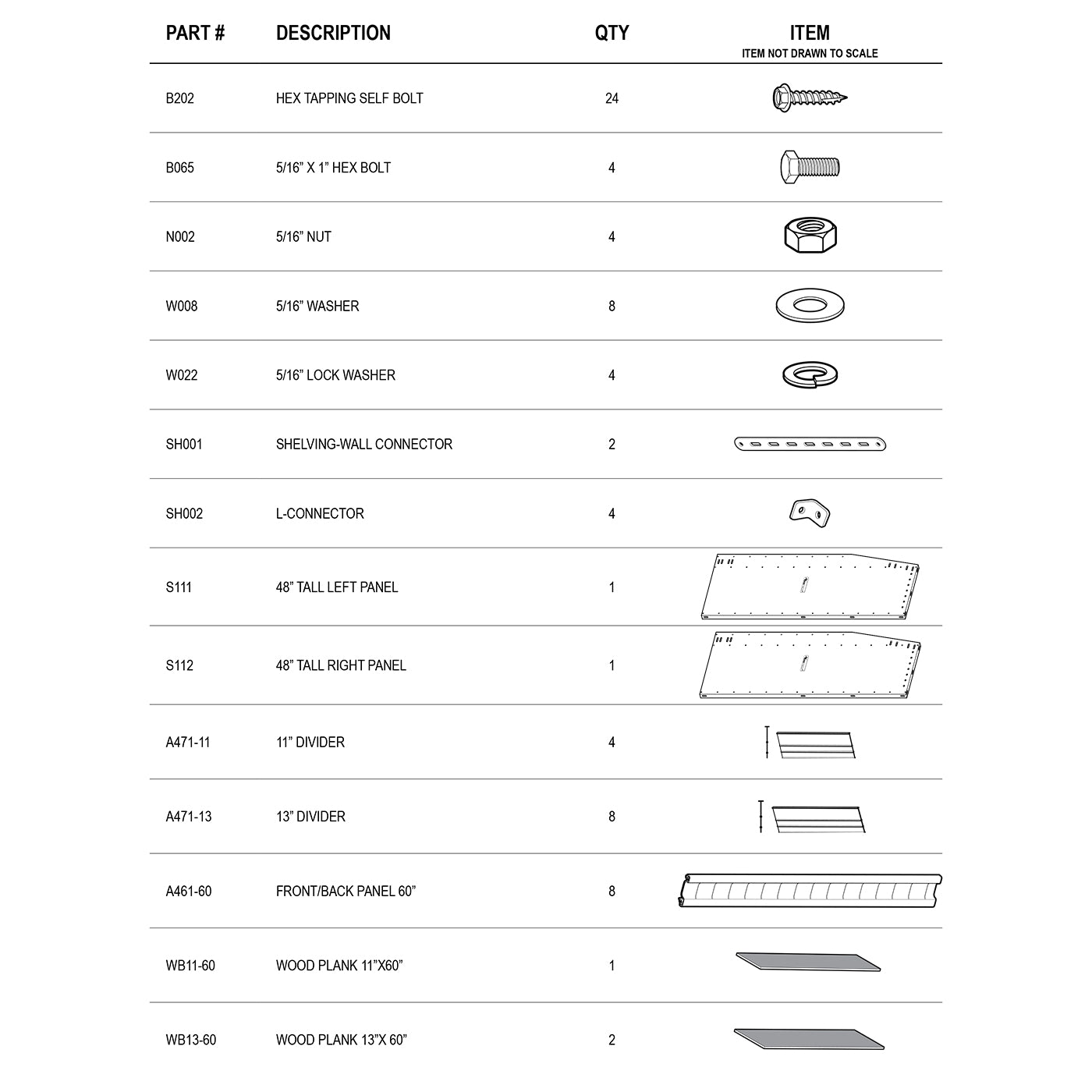 • Hardware to secure shelving to wall included (hardware for attaching to floor not included)