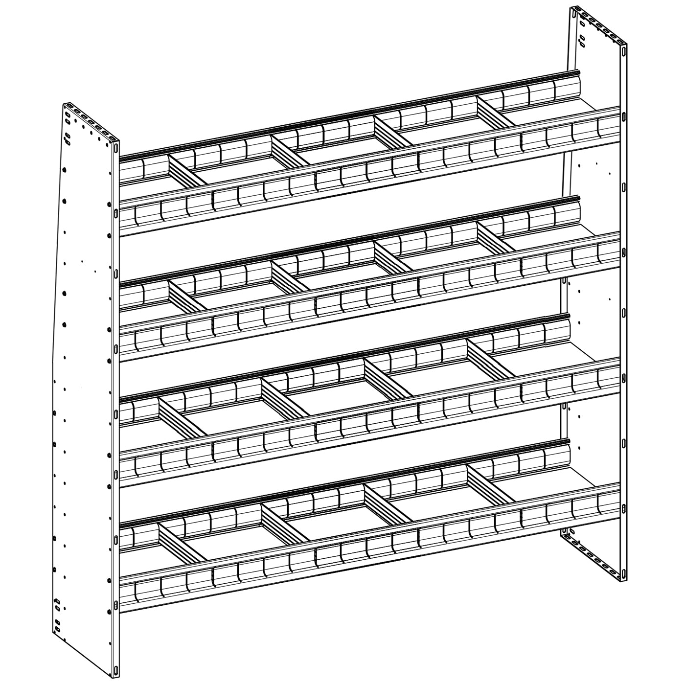 Lightweight aluminum cargo van shelves from Vantech. Constructed of aluminum with 1/2" plywood shelves wrapped in non-slip vinyl. Safely store and organize your tools, hardware, materials, and other items.