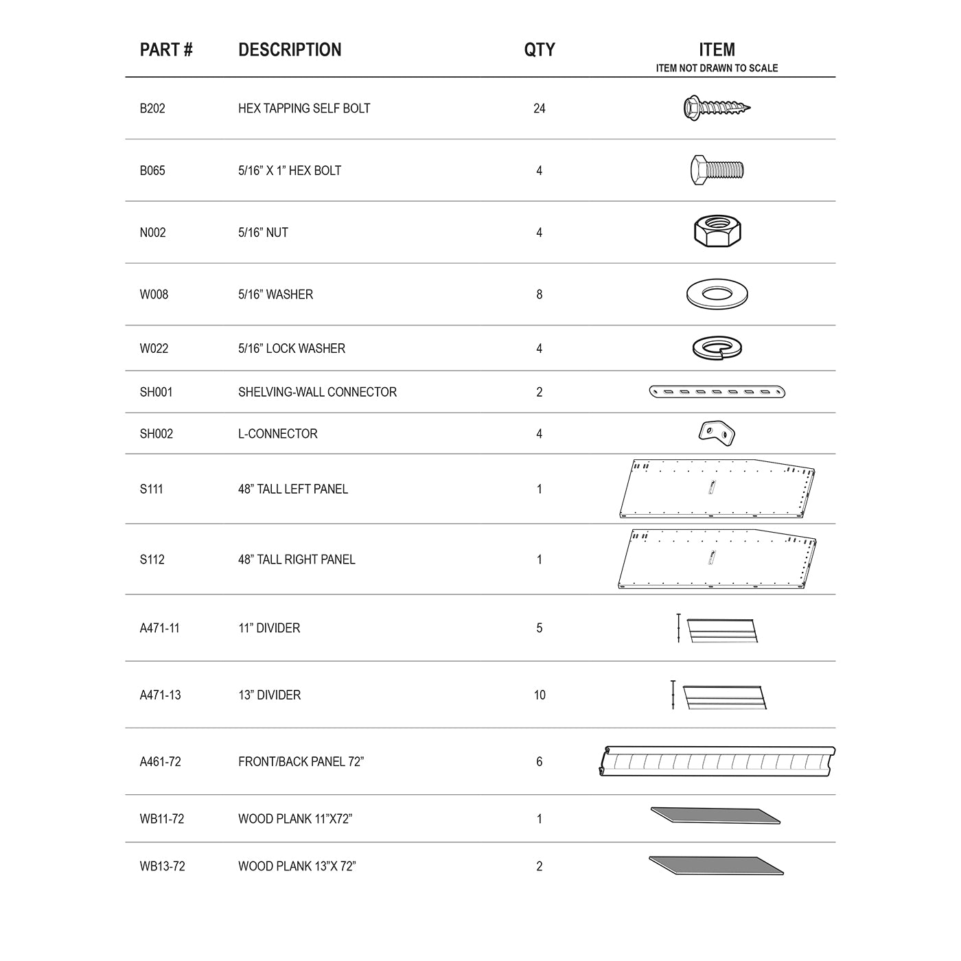 • Hardware to secure shelving to wall included (hardware for attaching to floor not included)