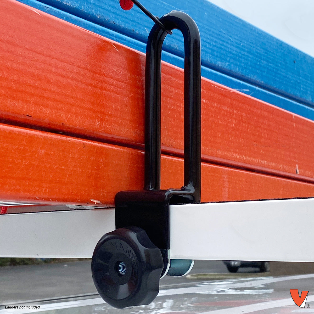 Ladder Guide is placed in the middle of the cross bar to divide or guide the ladder on to of the van rack. This product is compatible with Vantech M1000, M2000, M3000 or M4000 Systems. Or any crossbar that is 1″ wide X 1.5′ tall.