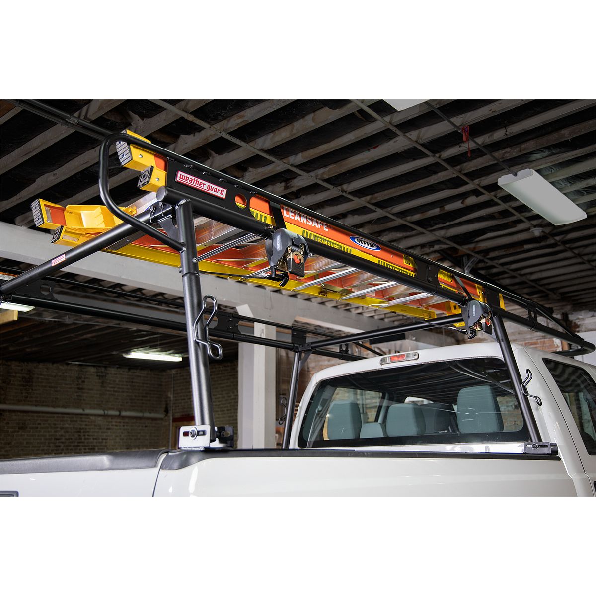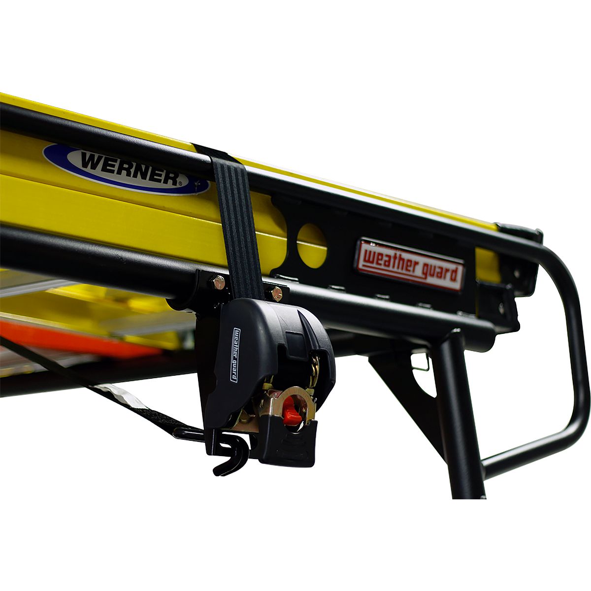 The WEATHER GUARD Model 1057-52-01 Ratchet Straps work with Model 1175-52-02, 1275-52-02, and 1345-52-02 steel truck racks to provide various tie-down points. Pack includes mounting bracket, hardware, and two straps.