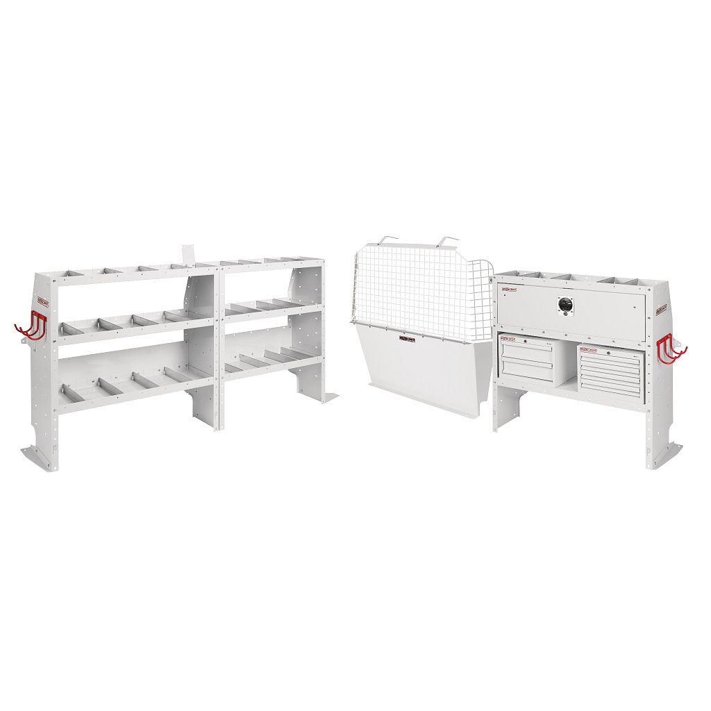 Includes everything you need for a complete upfit package, including bulkhead, driver/passenger side shelving, accessories, and installation kit all crafted specifically for your trade.