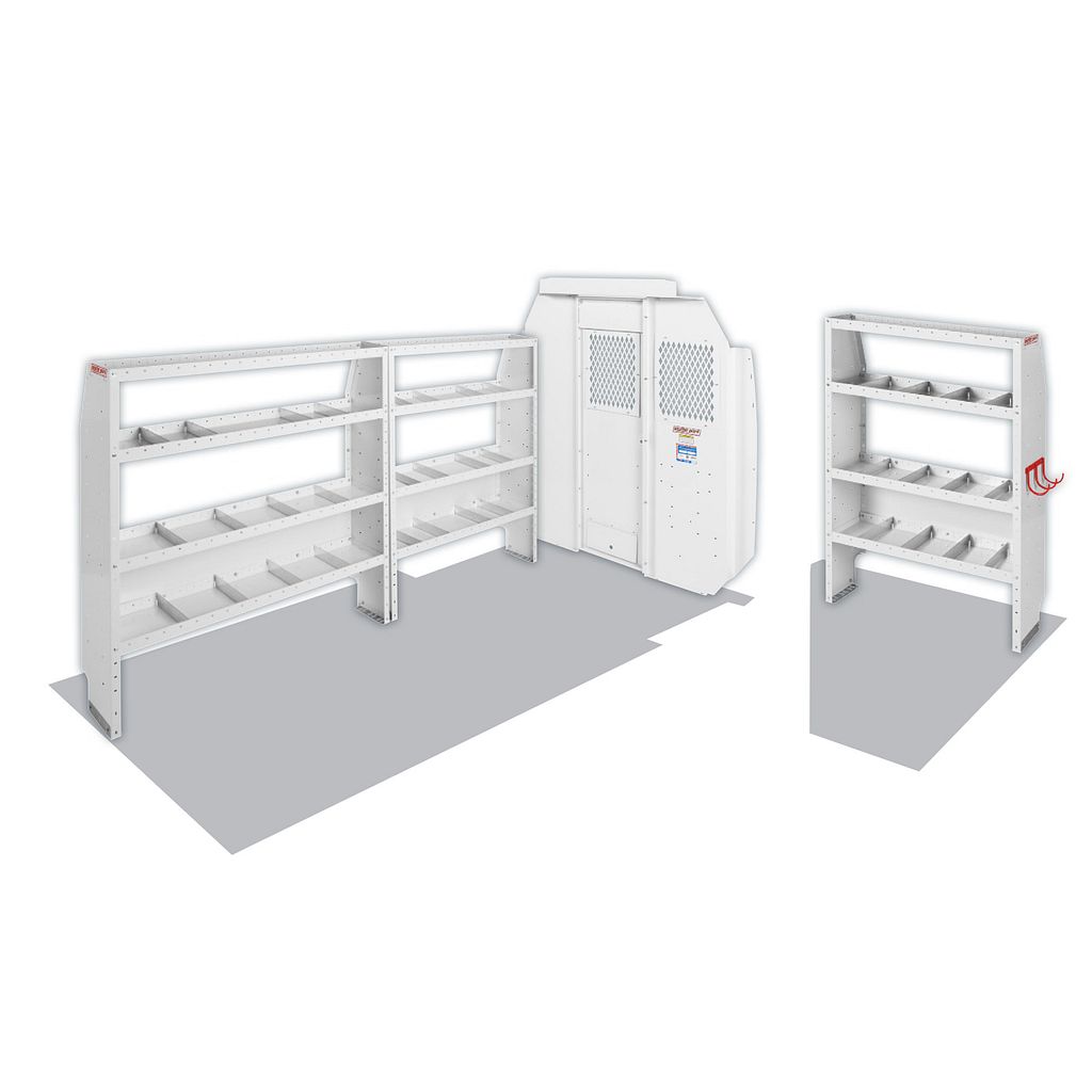 Designed for basic jobsite requirements and delivery service, the Model 600-8440R van package for Mid/High-Roof, 136in wheel base RAM ProMaster vans provides cargo van shelving sized to fit the commercial van interior that can be adjusted to meet any storage needs. It includes a sturdy van bulkhead for maximum protection against shifting loads. Additional van products are available to create a custom van storage solution.