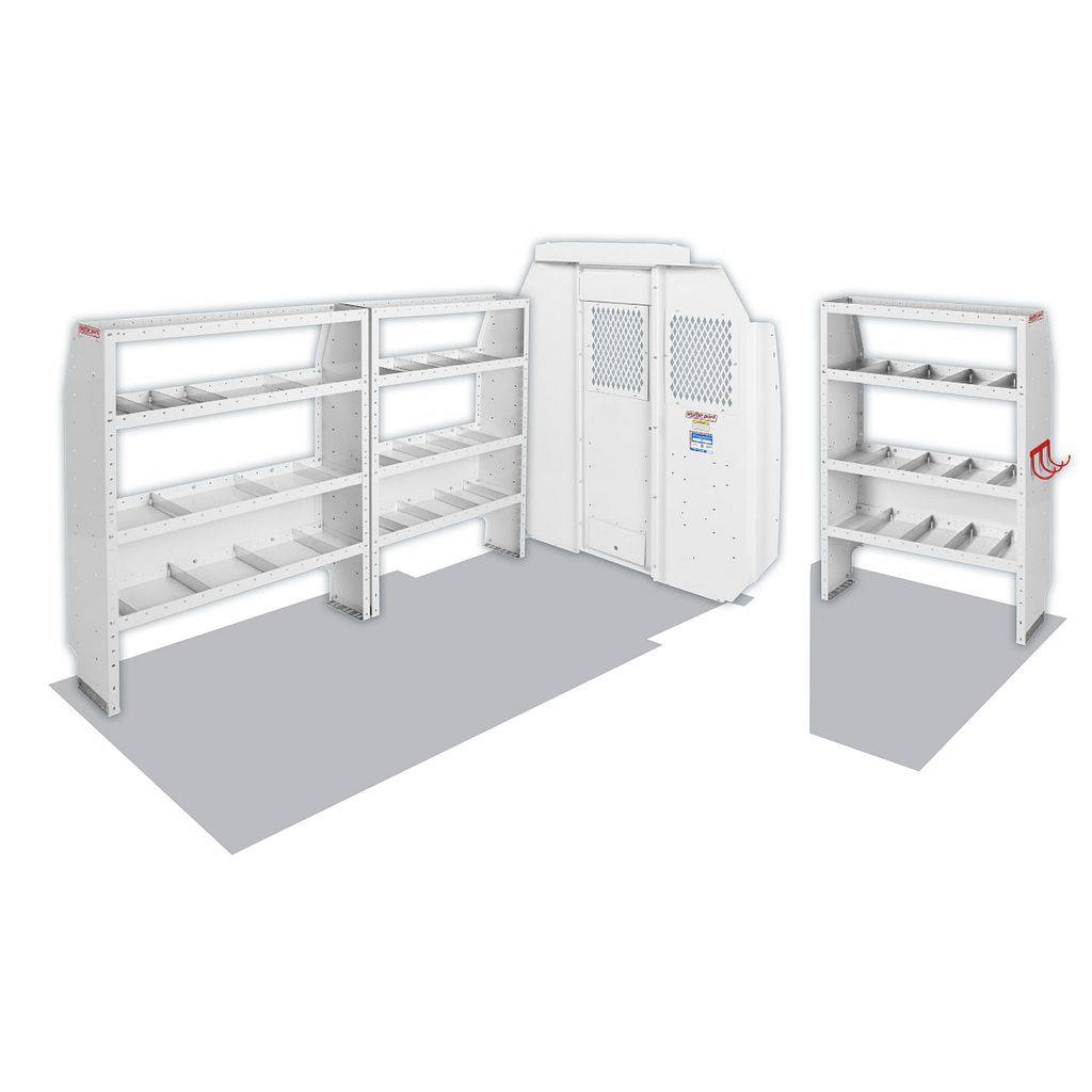 Designed for basic jobsite requirements and delivery service, the Model 600-8440S van package for Mid-Roof, 118in wheel base RAM ProMaster vans provides cargo van shelving sized to fit the commercial van interior that can be adjusted to meet any storage needs. It includes a sturdy van bulkhead for maximum protection against shifting loads. Additional van products are available to create a custom van storage solution